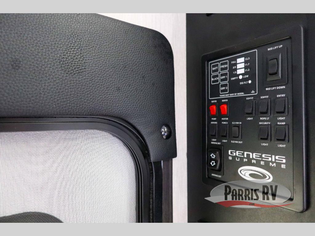 Your camping life is going to be a blast with the Genesis Supreme Vortex toy hauler! The innovative floorplans provide you with everything you need for memorable trips. These models can withstand the extreme heat of the desert, while still keeping you comfortable inside. There are kitchen and bath amenities inside, along with ample storage space for your belongings. With a wide variety of floorplans to choose from, you're sure to find the Vortex that fits your needs best!