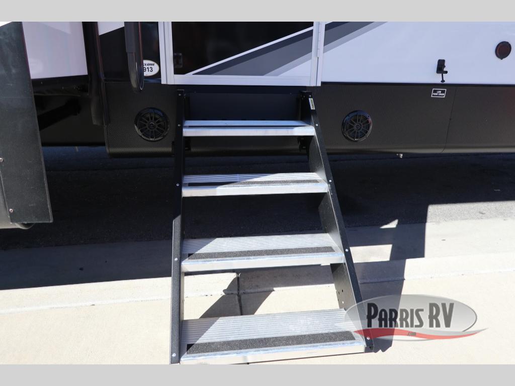Satisfy your wanderlust with a Heartland Cyclone fifth wheel toy hauler! You won't have to sacrifice any luxury either, with indulgent features like the ducted, fully enclosed, and heated underbelly provides added protection and warmth. Inside, the LED interior lighting throughout ensures that every corner of your RV is bright and inviting, and the bathroom skylight brings in natural light and fresh air, creating a welcoming and refreshing space. Plus, the central command center with built-in tank monitoring keeps you informed and in control, making it easy to manage your resources. Also, the Premium Exterior Package includes diverse features such as Dexter axles with ABS and tow assist with sway mitigation, and the Keyed-Alike lock system ensures that all your locks are keyed the same, providing added security and convenience. Come find the perfect model for you today!