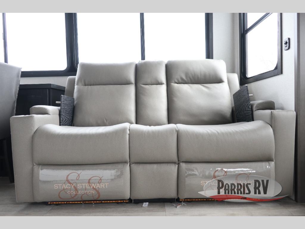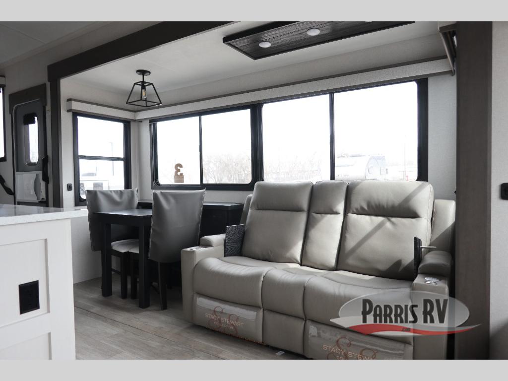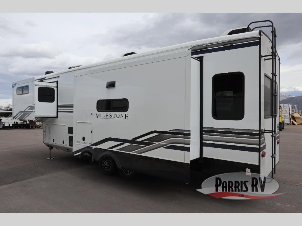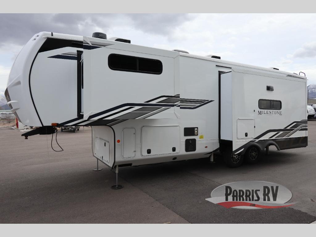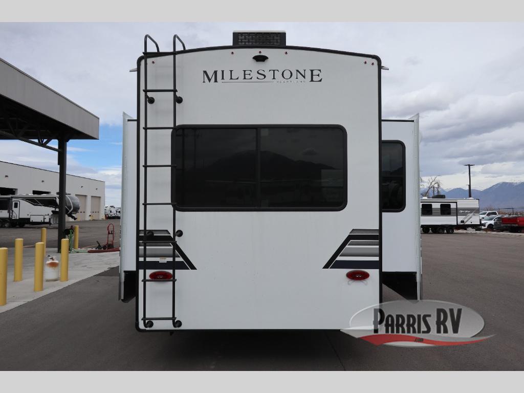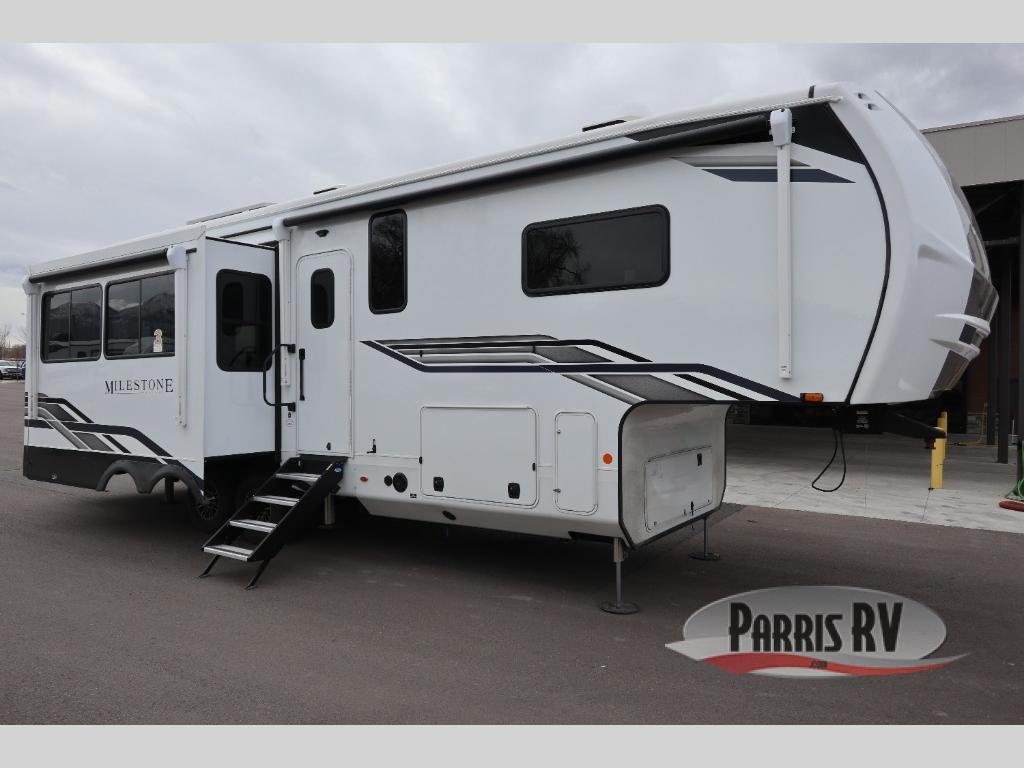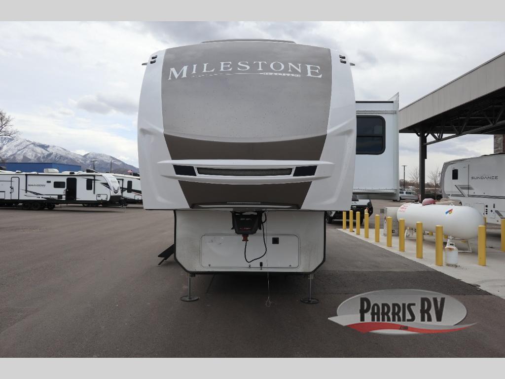 You'll be able to see the country in full luxury with this Milestone fifth wheel! There is a private bedroom in the front with a king-size bed where you can sleep comfortably each evening.The kitchen has all the appliances you will need to make the most out of your trips featuring a convection microwave, 21” oven, and a 16 cu. ft. 12V refrigerator. The living room will make for a great entertaining area, you can relax on the 78" hide-a-bed sofa that will serve as a bed so you can sit back and even have a nap! There is a full bathroom that has a 30" by 48" shower to freshen up each day. This RV has a wonderful design featuring dual opposing slides that will make for the real residential experience and make the most out of your travel.