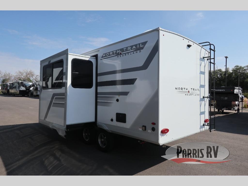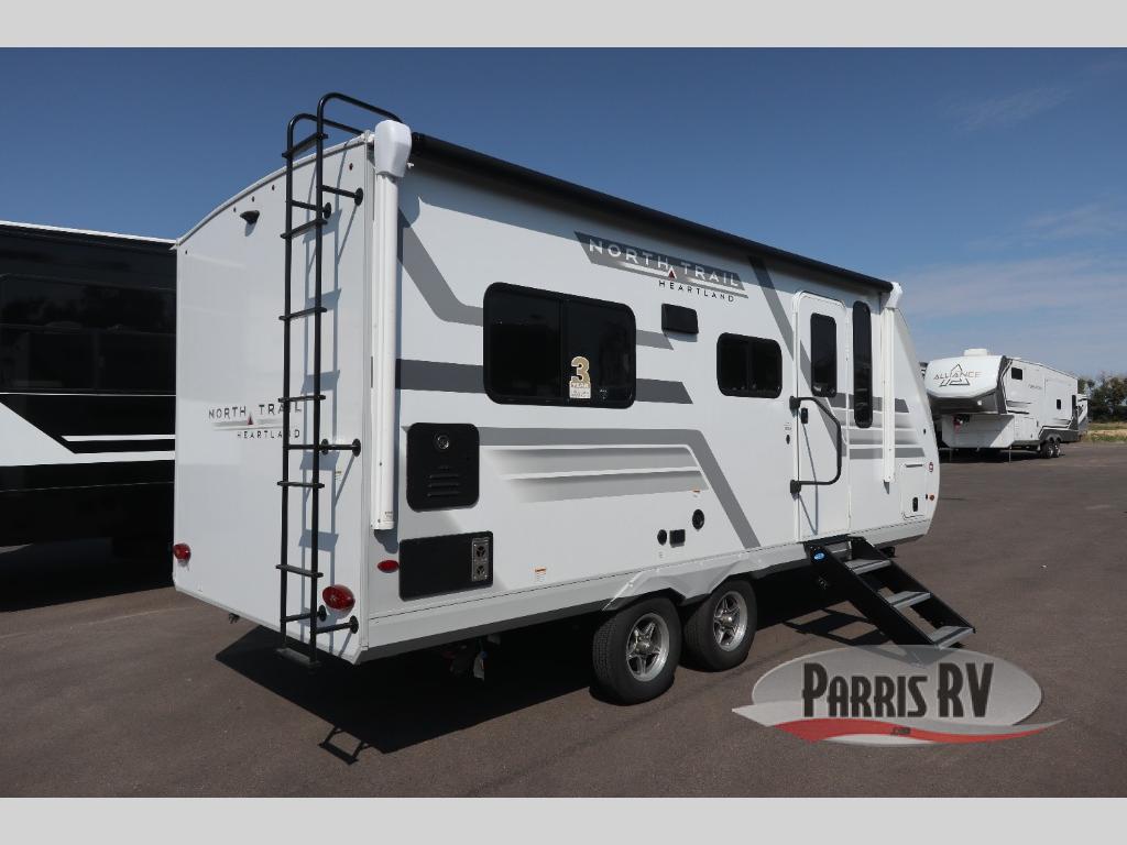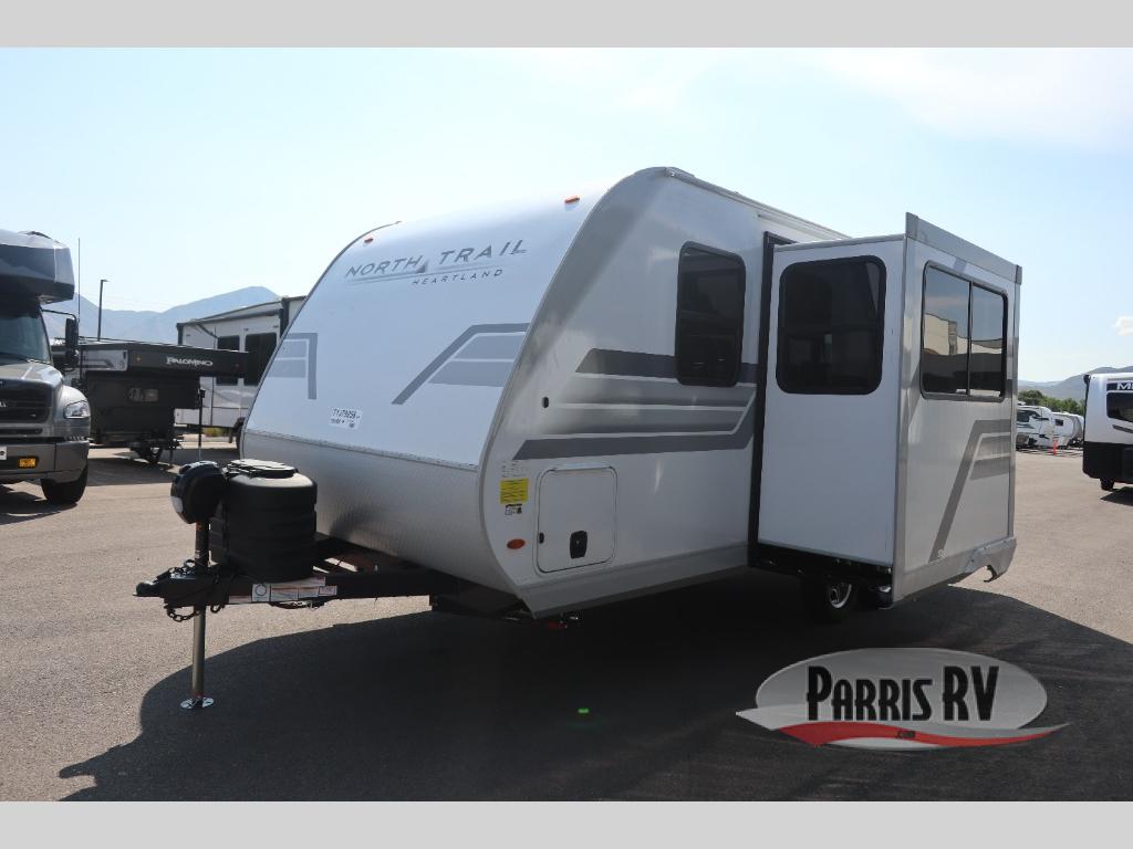 Built for comfort, durability, and modern convenience, these Heartland North Trail travel trailers offer everything you need for a premium camping experience. Each model features a strong American-made Norco Z-frame with an aerodynamic front profile and front diamond plating for added protection. The exclusive TrusstXL Roof System and CoreShield vacuum-bonded walls with Azdel provide superior insulation. Inside, enjoy residential comforts like seamless countertops, solid hardwood maple cabinet doors, LED lighting throughout, and 60 x 80 in. queen beds or 60 x 76 in. Murphy beds. Tech-ready features include an LED smart TV, USB ports, TPMS monitoring, and a 200W solar panel with 30 AMP digital controller. With a Quiet Series A/C, on-demand 60K BTU water heater, with these trailers you are equipped to make every trip comfortable and adventure-ready.