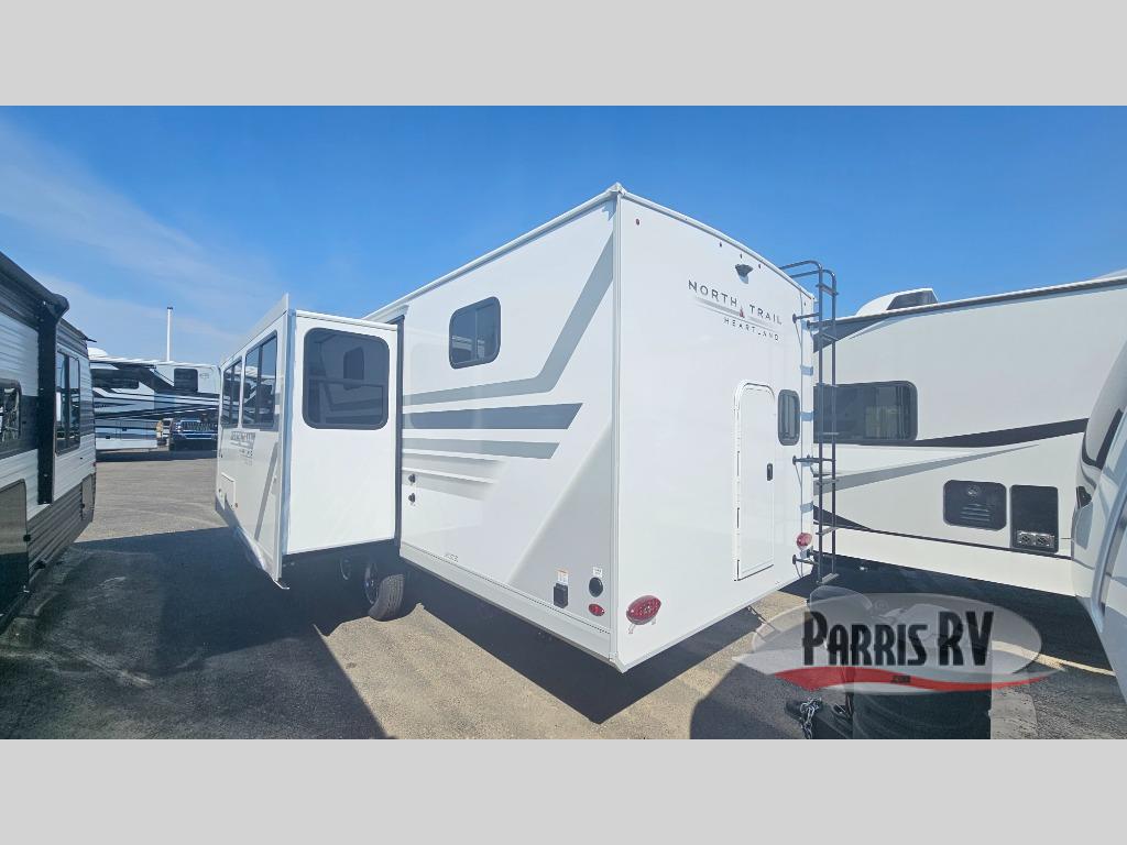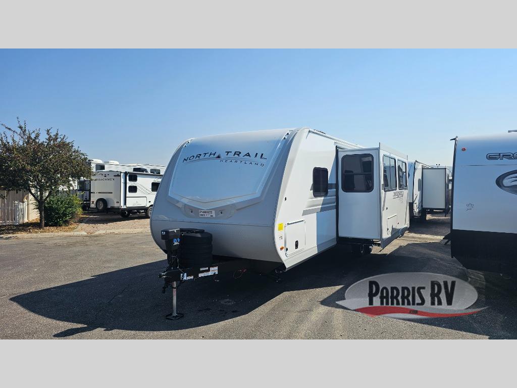 Built for comfort, durability, and modern convenience, these Heartland North Trail travel trailers offer everything you need for a premium camping experience. Each model features a strong American-made Norco Z-frame with an aerodynamic front profile and front diamond plating for added protection. The exclusive TrusstXL Roof System and CoreShield vacuum-bonded walls with Azdel provide superior insulation. Inside, enjoy residential comforts like seamless countertops, solid hardwood maple cabinet doors, LED lighting throughout, and 60 x 80 in. queen beds or 60 x 76 in. Murphy beds. Tech-ready features include an LED smart TV, USB ports, TPMS monitoring, and a 200W solar panel with 30 AMP digital controller. With a Quiet Series A/C, on-demand 60K BTU water heater, with these trailers you are equipped to make every trip comfortable and adventure-ready.