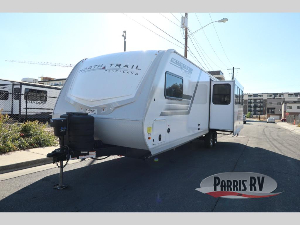 Built for comfort, durability, and modern convenience, these Heartland North Trail travel trailers offer everything you need for a premium camping experience. Each model features a strong American-made Norco Z-frame with an aerodynamic front profile and front diamond plating for added protection. The exclusive TrusstXL Roof System and CoreShield vacuum-bonded walls with Azdel provide superior insulation. Inside, enjoy residential comforts like seamless countertops, solid hardwood maple cabinet doors, LED lighting throughout, and 60 x 80 in. queen beds or 60 x 76 in. Murphy beds. Tech-ready features include an LED smart TV, USB ports, TPMS monitoring, and a 200W solar panel with 30 AMP digital controller. With a Quiet Series A/C, on-demand 60K BTU water heater, with these trailers you are equipped to make every trip comfortable and adventure-ready.