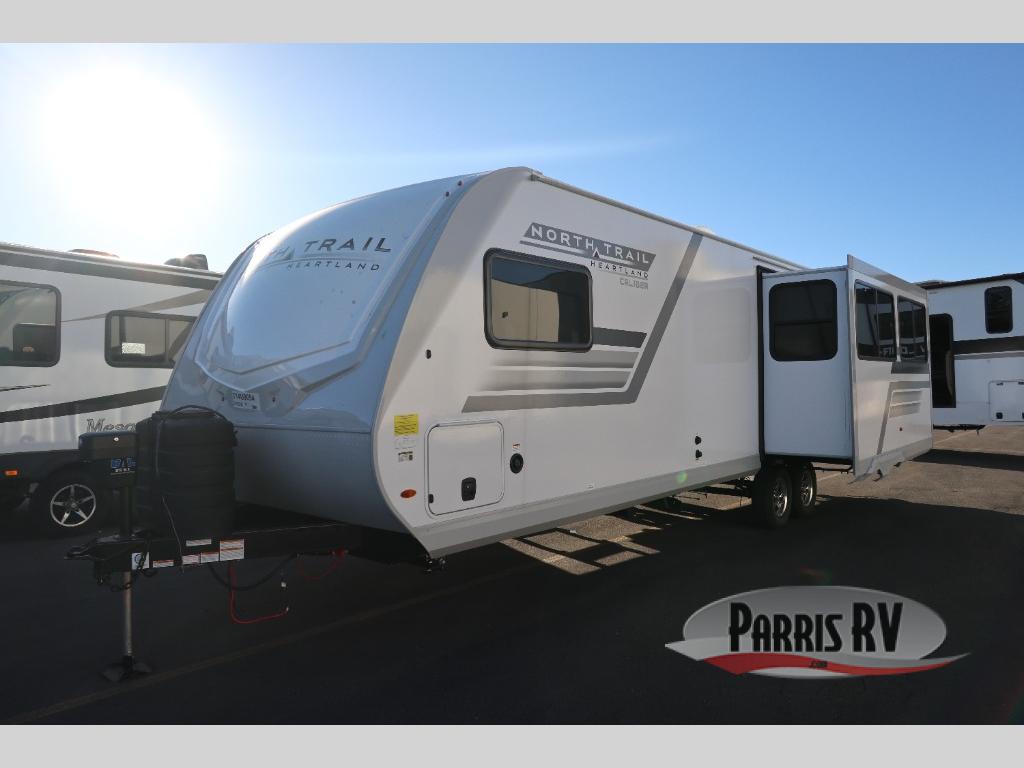 Built for comfort, durability, and modern convenience, these Heartland North Trail travel trailers offer everything you need for a premium camping experience. Each model features a strong American-made Norco Z-frame with an aerodynamic front profile and front diamond plating for added protection. The exclusive TrusstXL Roof System and CoreShield vacuum-bonded walls with Azdel provide superior insulation. Inside, enjoy residential comforts like seamless countertops, solid hardwood maple cabinet doors, LED lighting throughout, and 60 x 80 in. queen beds or 60 x 76 in. Murphy beds. Tech-ready features include an LED smart TV, USB ports, TPMS monitoring, and a 200W solar panel with 30 AMP digital controller. With a Quiet Series A/C, on-demand 60K BTU water heater, with these trailers you are equipped to make every trip comfortable and adventure-ready.