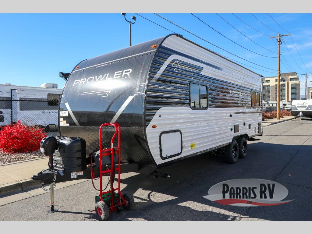 With any Prowler travel trailer, you will enjoy convenient amenities and at-home comforts wherever you decide to camp! Each one is built with a durable fully integrated A-frame, a TrussXL roof system, and galvanized wheel wells. And the self-adjusting brakes, easy-lube axles and nitrogen filled radial tires will provide smooth towing. Inside, you'll enjoy vinyl flooring throughout that will be easy to keep clean, durable, residential-inspired kitchen countertops, a residential-style high-rise kitchen faucet, and solid hardwood cabinet doors with hidden hinges and screwed stile construction. The mandatory Camping in Comfort Package includes a large folding entry door grab handle, MORryde Step Above entry steps, an on-demand tankless water heater, and stylish window shades. There are also available options that vary between single and double axle units that will allow you to customize your Prowler to fit your needs!