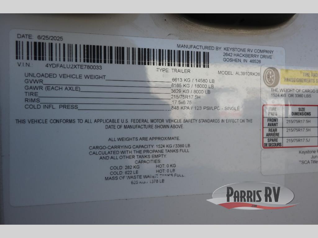 Keystone RV Alpine fifth wheel 3910RK highlights: