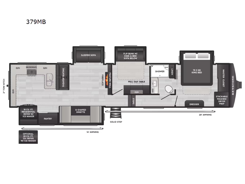 | Awning Info | 14' and 20' Power Carefree w/Adjustable Arms |
