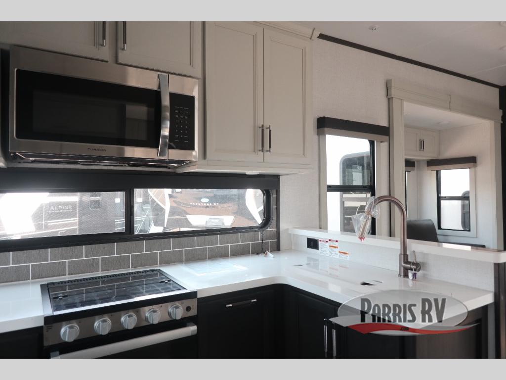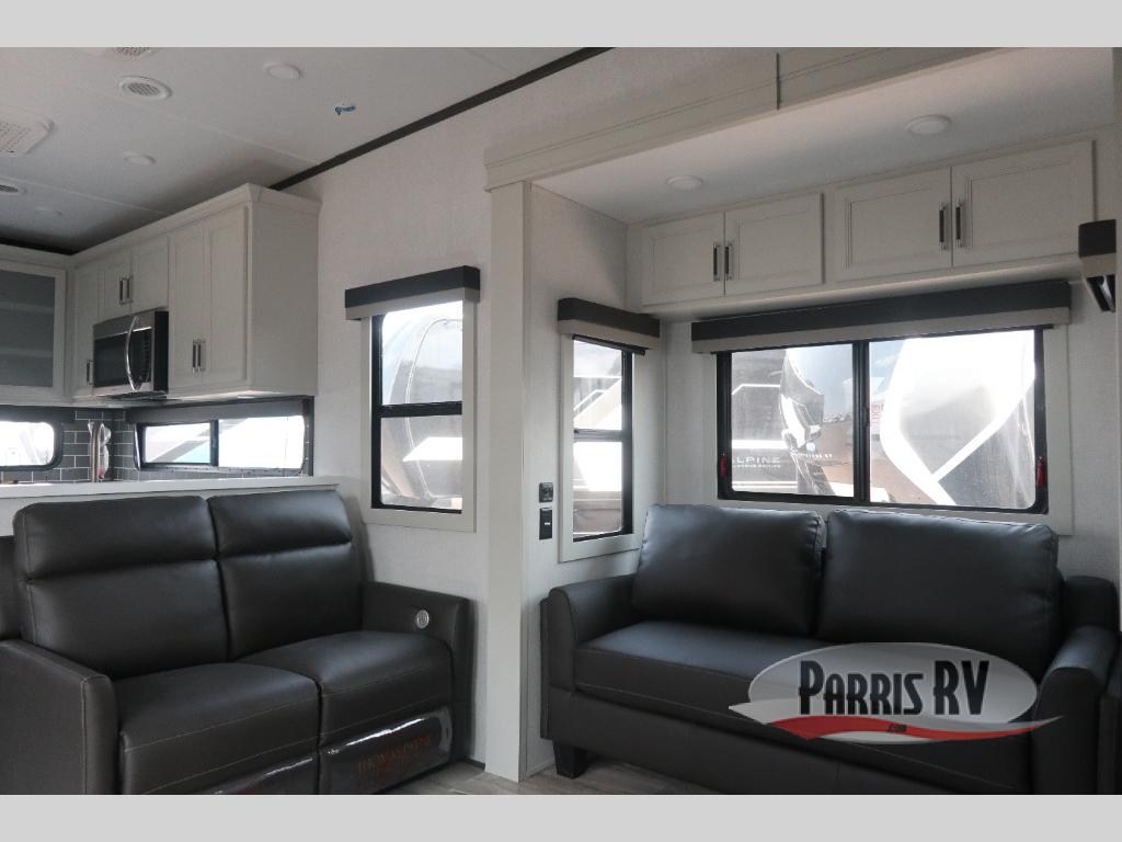 With any Keystone luxury Alpine Avalanche Edition fifth wheel, you will experience wide-body construction that allows you to stretch out and stay awhile during any season thanks to the Polar Pack All Season Protection that includes a heated and enclosed underbelly, an Astro foil reflective layer on the roof, front and rear walls, and two static attic vents, plus more! The interior offers hardwood slide out fascia with wood accents, designer upholstered window valances with custom wood window frame, plus your choice of modern interior design. There are many more Keystone exclusives, like the Tru-Fit slide construction, the in-floor heating ducts, KeyTV™, and much more to bring you a full-packed, luxury fifth wheel!