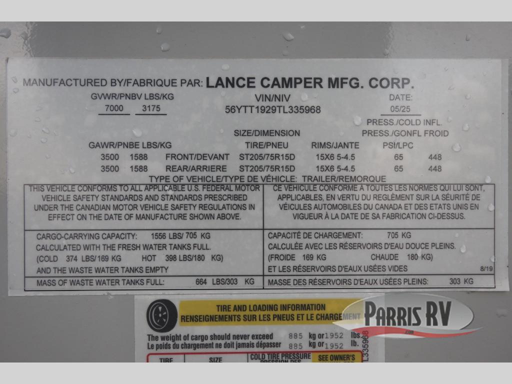 New 2026 Lance Lance Travel Trailers 1995