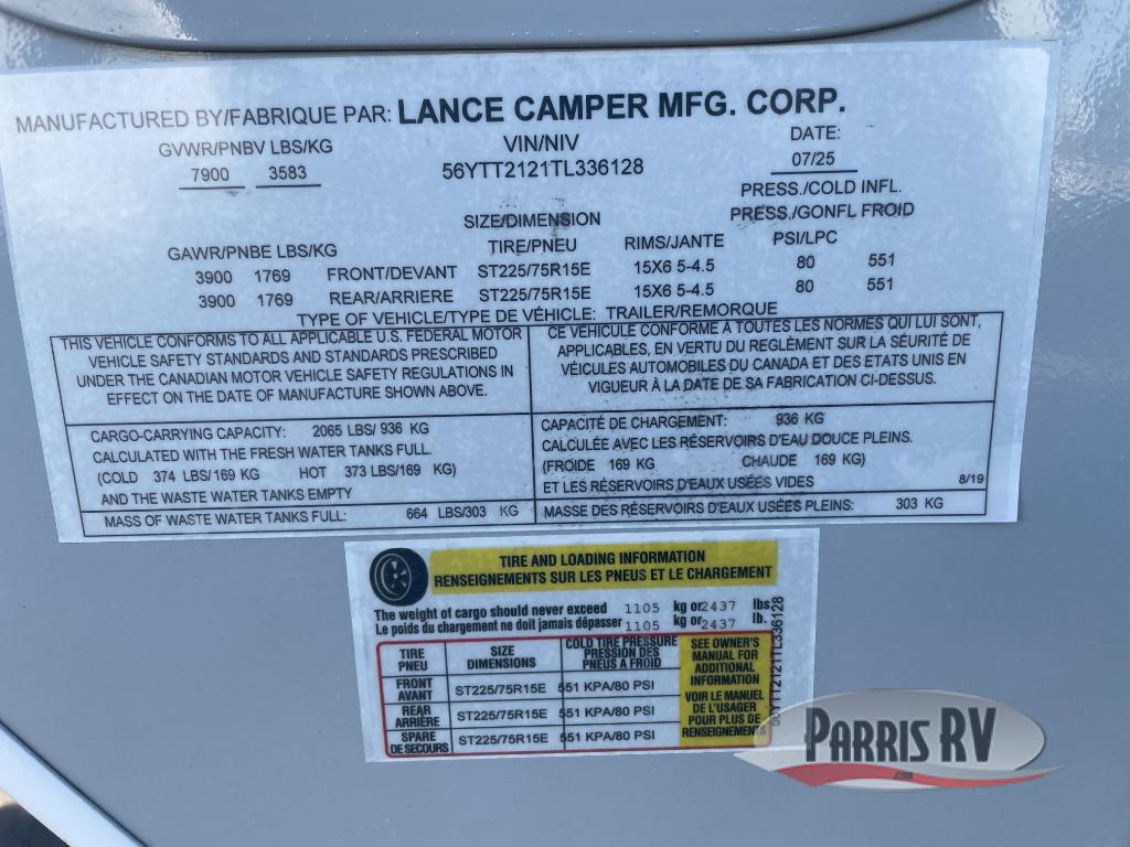 New 2026 Lance Lance Travel Trailers 2185