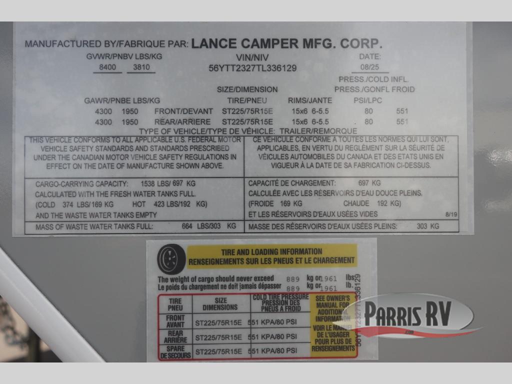 The line-up for the Lance travel trailers centers around three gorgeous interior décor options, a lengthy list of product enhancements, and simplification of ordering with many optional features being made standard. Some of the stand out features you'll want to take note of are the Keyed-Alike storage compartment doors for all of your camping essentials, the dual layer Azdel composite to prevent your unit from rotting, and the durable one-piece TPO roof. The interior includes Euro overhead cabinetry designs, a pop-up electrical/charging tower, and a Shower Miser water system. You'll also find an innerspring mattress with a bedspread, a dual pane shower skylight, USB charging ports to keep your electronics at 100%, plus a JBL AM/FM stereo and JBL interior/exterior Bluetooth speakers to keep the party going!