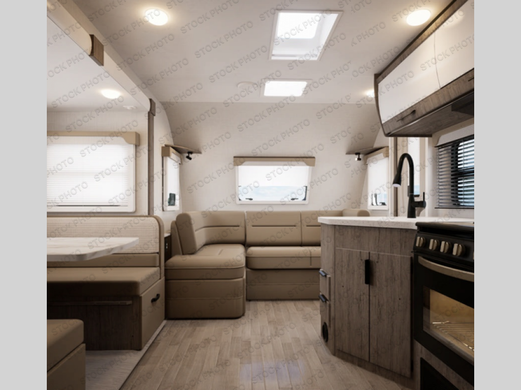 This Lance travel trailer has the best bedroom out of the entire brand! Not only do you have a private bedroom at the back of the trailer with a slide out for more walking space, but you also have a king-size bed just waiting for you to enjoy its comfort. Another comfortable feature found on this trailer is the front sofa bed. Added to the booth dinette and king-size bed, this sofa helps this trailer sleep five people during every getaway.