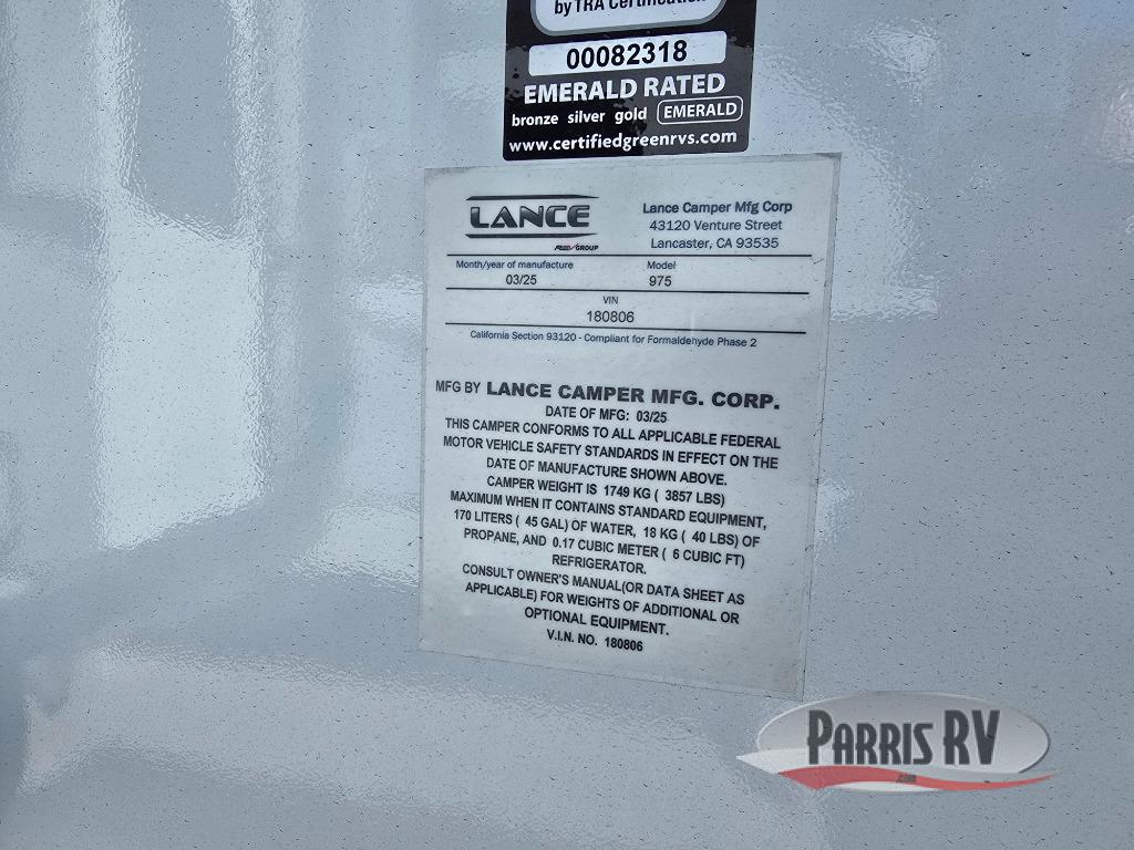 There's no better time than now to start camping in a Lance truck camper! Each model is constructed with a full aluminum frame, a one-piece roof membrane, and block foam insulation throughout to enjoy four seasons of camping. You'll appreciate a keyless entry, an exterior shower, electric remote camper jacks, and eye-catching mountain scene graphics. Inside, there are flat panel cabinet doors, Euro-ply non-toxic cabinet construction, a combo blackout screen and shade, plus a convenient key hanger. There is also a dual pane bath skylight, a solid surface galley countertop, a pop-up charging tower, plus many more interior comforts. And don't forget to check out the select optional features available to further customize your truck camper!