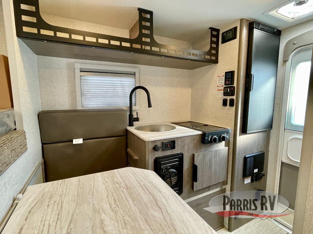 This lightweight truck camper is perfect for short bed trucks. The compact galley includes a two-burner cooktop, a stainless-steel sink, and a 12V refrigerator to keep your food fresh. A dinette provides a place to dine together or play games in the evening, and there is Molle-backed cabinet framing for extra storage. You will appreciate the wet bath with ducted heat and foot flush marine toilet, so you don't have to leave your camper in the middle of the night. A queen-size bed will provide a great night's rest, while the reading lights let you stay up late with a book!