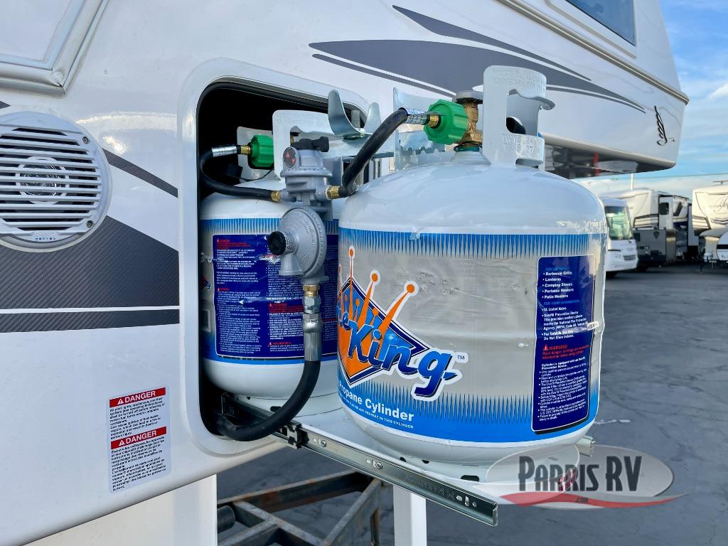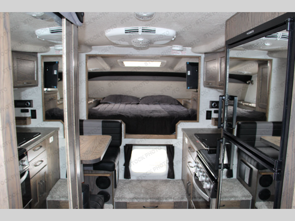 If you have a short bed truck then you need this truck camper for your next adventure! Start each morning feeling recharged after sleeping on the front queen bed while your electronics recharge at the 12V USB charging stations. Fill your bellies with fried bacon and eggs cooked on the three burner stove with oven and drink a cold glass of orange juice stored in the 6.3 cu. ft. two way refrigerator. Plus, you can eat your meals at the face-to-face dinette and transform into an extra sleeping space. You can even freshen up each morning in the wet bath. There is plenty of storage throughout with closets and overhead cabinets too! An optional 600AH lithium power system and optional Truma Combi furnace/hot water system can be added on this model for even more comfort and convenience!