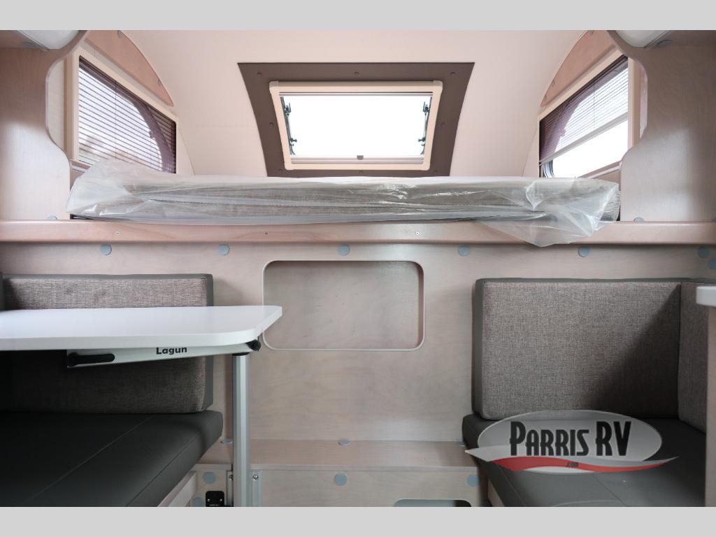 This Cirrus truck camper comes with a Froli sleep system which is a unique and innovative approach to a comfortable night of sleep. While you're sleeping on the bed, you can look through the stargazer window to appreciate the night sky. The dinette can easily be transformed into a second bed, and the sink, two-burner stove, and 4.6 cu. ft. 12V compressor refrigerator give you a place to prepare meals. This model also comes with an external LP hook-up, a Nautilus Water Management System, an exterior shower, and a dual battery compartment.