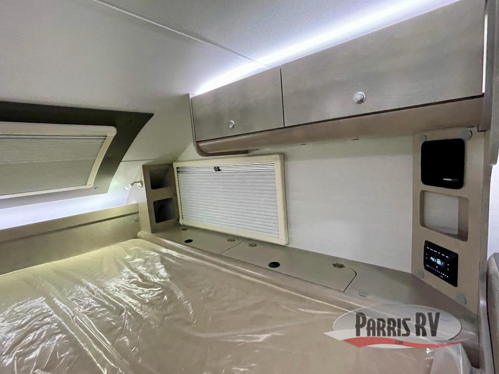 You will find a pass-thru window on this Cirrus truck camper. The exterior has a Maggie roof rack for bringing along extra gear, and there is a motorized 120" side awning to protect you while you're living life outside. The convection microwave/oven is going to make your meal prep easier and faster, and the air conditioning will keep this camper's interior at a desirable temperature even when it's hot outside. This model also comes with a Bluetooth media center with 19" TV and a great sleeping area with the Froli sleep system.