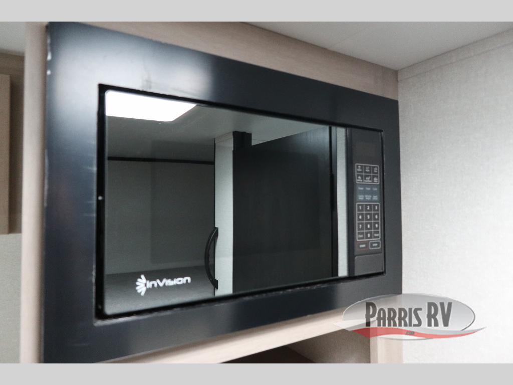 This easy to tow travel trailer features compact sleeping spaces thanks to the bunk beds in the rear corner, and the private bath is right next to the bunks for easy nighttime use! You'll have the front queen bed to yourselves, while another guest or two little ones convert the booth dinette to sleeping space. A two-burner cooktop and microwave oven will let you make meals each day, and there is a 12V refrigerator to keep your cold items fresh. Outside, you'll enjoy the 10' power awning for added shade, and there is exterior storage to keep fishing poles, hiking gear and more!