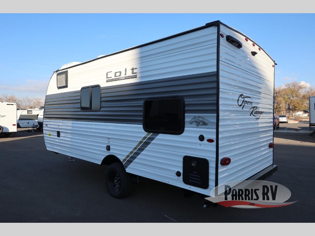 With any Colt travel trailer by Open Range RV, you can be sure you're getting a budget-friendly unit designed to fit your lifestyle! Each one is built to last with a PVC roofing membrane and built-in A-frame, plus there are nitrogen-filled radial tires and self-adjusting electric brakes for easy towing. You will appreciate the utilities that include 30-amp service, an A/C unit, and an on-demand tankless water heater. A few interior comforts include vinyl flooring throughout, solid hardwood cabinet doors, and residential grade kitchen countertops to make your space feel more like home. There are additional features available, depending on the edition you choose, along with available options to further customize your Colt travel trailer!