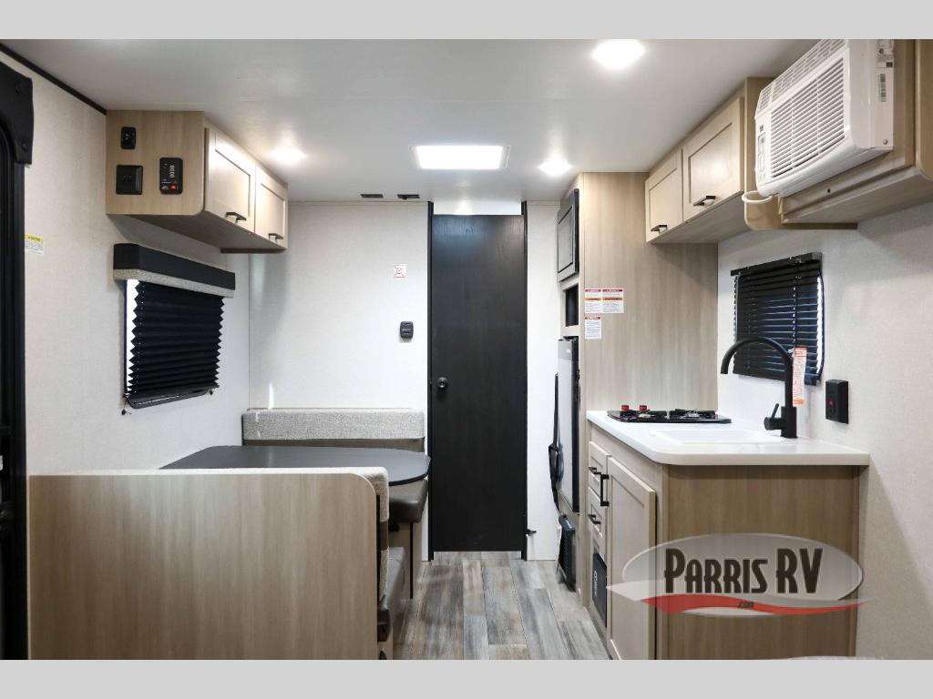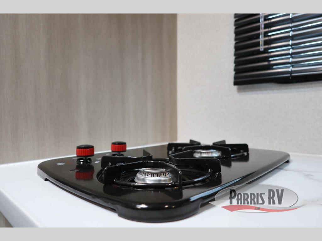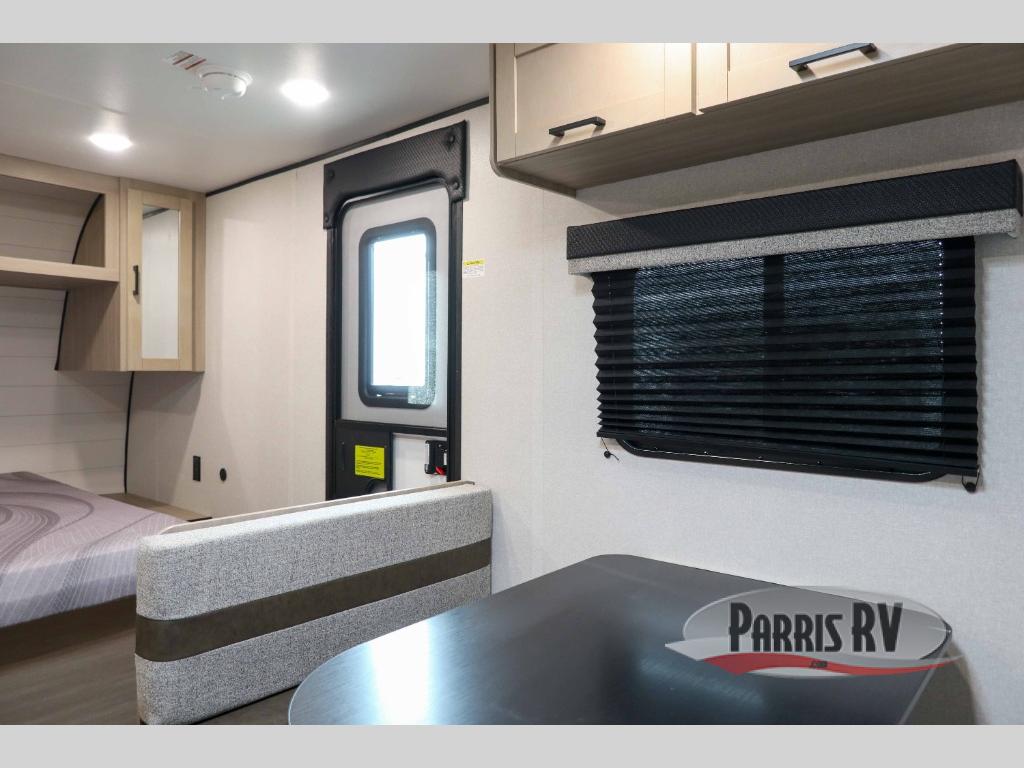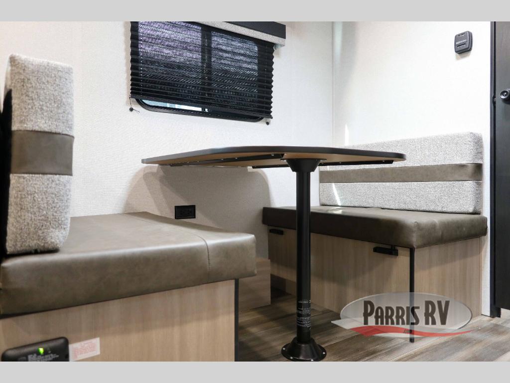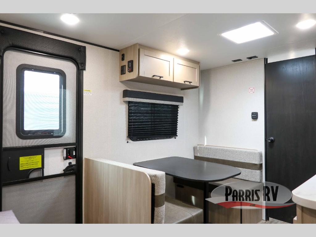 This travel trailer is just what the doctor ordered! Once you've loaded up the exterior storage, you can head out to the campground of your choice. The 10' power awning can be put out when you arrive, then you can relax in your camp chairs or head inside to make lunch on the two-burner cooktop. There is also a microwave oven for quick meals and a 12V refrigerator for food storage. A booth dinette provides a place to dine together, and you can convert it to sleeping space at night for one to two guests. You'll love the front queen bed that includes an overhead shelf and a wardrobe for your things, and this unit includes a full rear bath for added privacy. Here, you'll find a 24" x 32" shower, a toilet, and a linen closet plus shelves/storage for toiletries and towels!