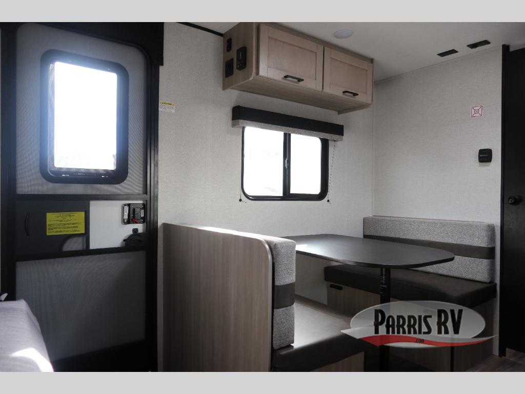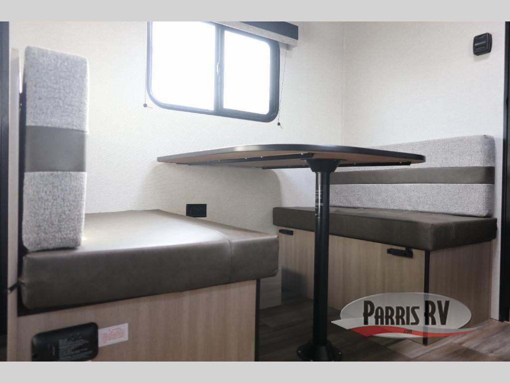 This travel trailer is just what the doctor ordered! Once you've loaded up the exterior storage, you can head out to the campground of your choice. The 10' power awning can be put out when you arrive, then you can relax in your camp chairs or head inside to make lunch on the two-burner cooktop. There is also a microwave oven for quick meals and a 12V refrigerator for food storage. A booth dinette provides a place to dine together, and you can convert it to sleeping space at night for one to two guests. You'll love the front queen bed that includes an overhead shelf and a wardrobe for your things, and this unit includes a full rear bath for added privacy. Here, you'll find a 24" x 32" shower, a toilet, and a linen closet plus shelves/storage for toiletries and towels!