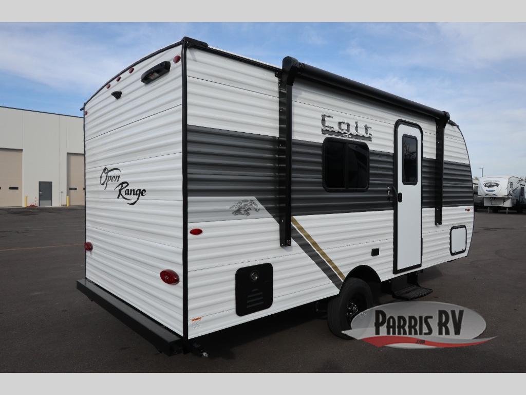 With any Colt travel trailer by Open Range RV, you can be sure you're getting a budget-friendly unit designed to fit your lifestyle! Each one is built to last with a PVC roofing membrane and built-in A-frame, plus there are nitrogen-filled radial tires and self-adjusting electric brakes for easy towing. You will appreciate the utilities that include 30-amp service, an A/C unit, and an on-demand tankless water heater. A few interior comforts include vinyl flooring throughout, solid hardwood cabinet doors, and residential grade kitchen countertops to make your space feel more like home. There are additional features available, depending on the edition you choose, along with available options to further customize your Colt travel trailer!