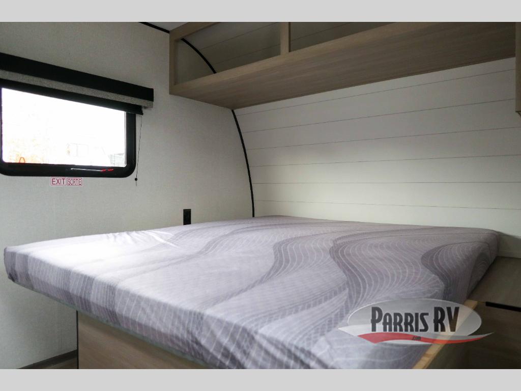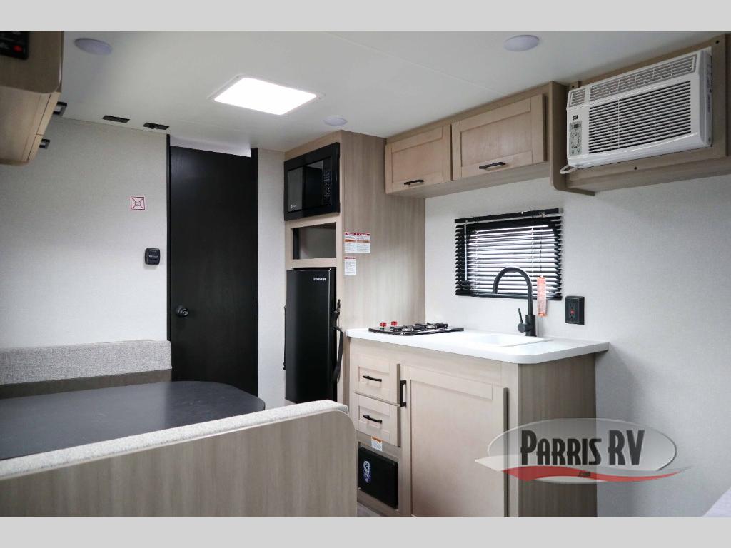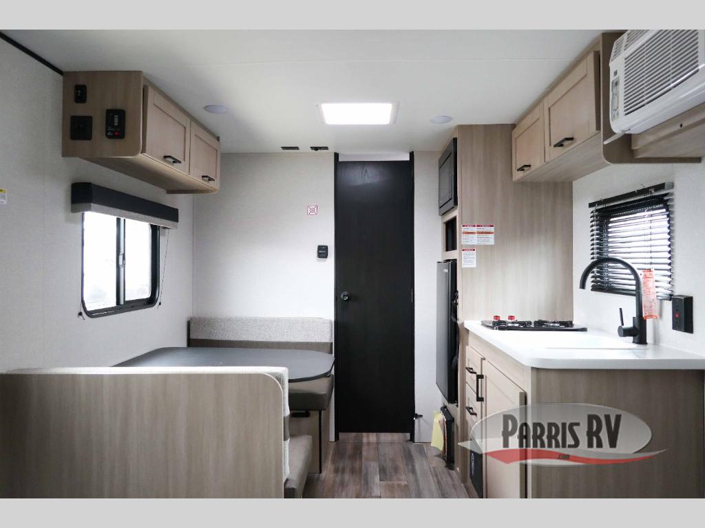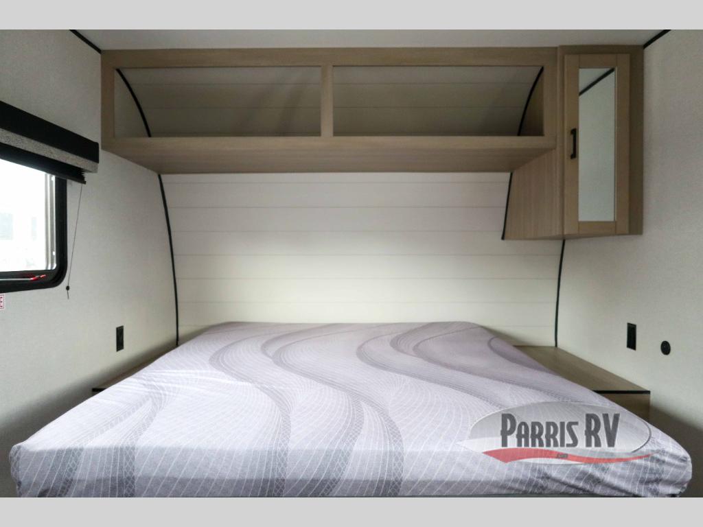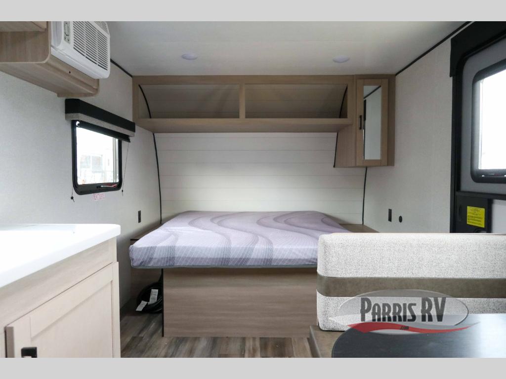 This travel trailer is just what the doctor ordered! Once you've loaded up the exterior storage, you can head out to the campground of your choice. The 10' power awning can be put out when you arrive, then you can relax in your camp chairs or head inside to make lunch on the two-burner cooktop. There is also a microwave oven for quick meals and a 12V refrigerator for food storage. A booth dinette provides a place to dine together, and you can convert it to sleeping space at night for one to two guests. You'll love the front queen bed that includes an overhead shelf and a wardrobe for your things, and this unit includes a full rear bath for added privacy. Here, you'll find a 24" x 32" shower, a toilet, and a linen closet plus shelves/storage for toiletries and towels!