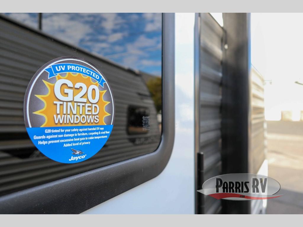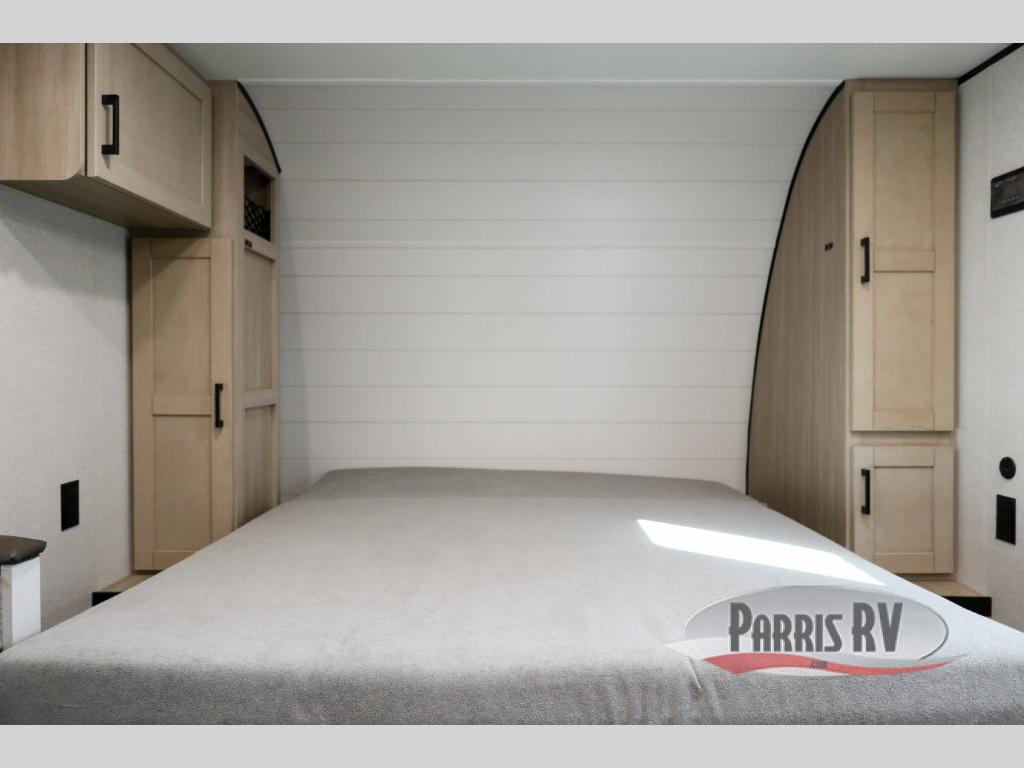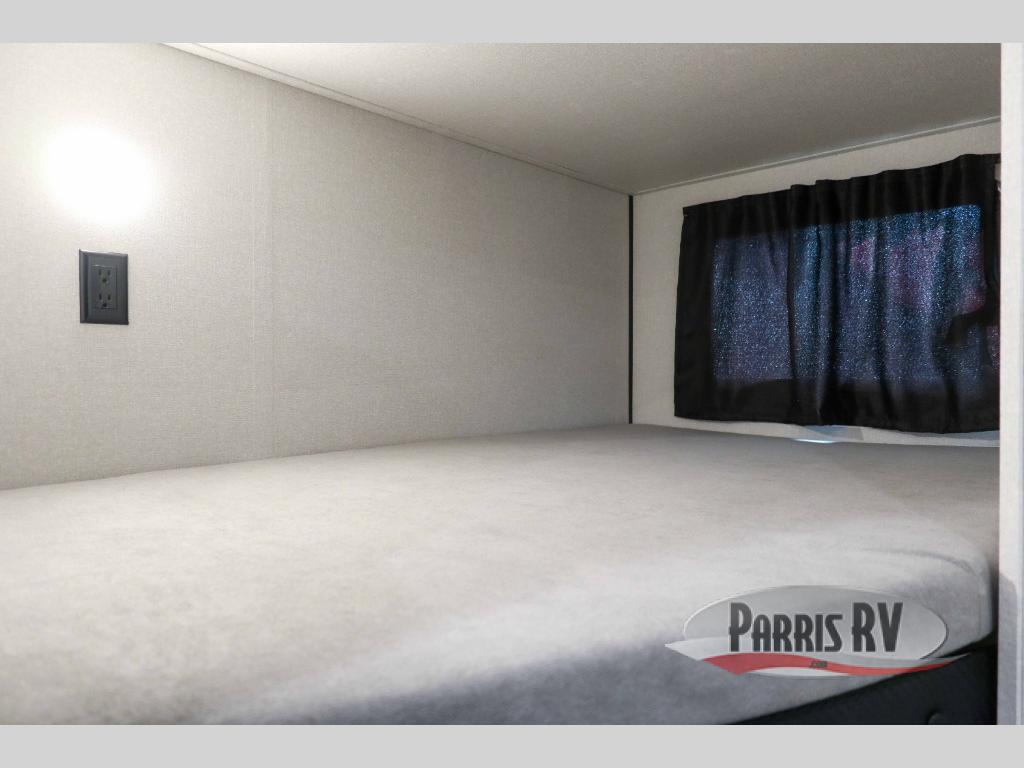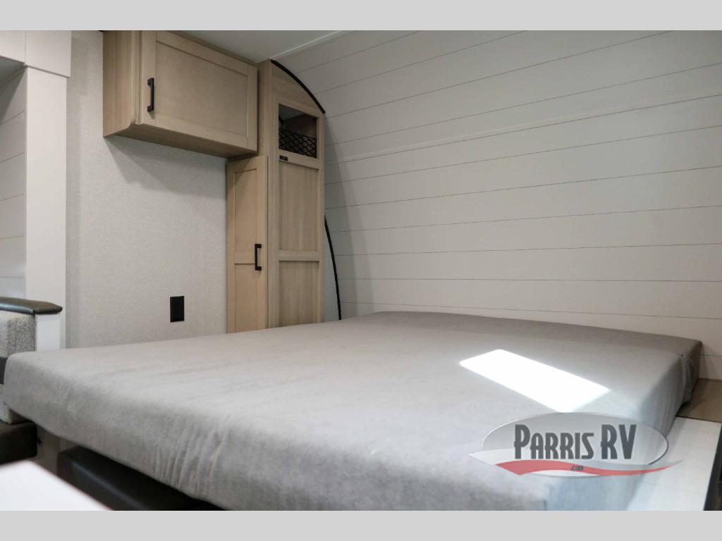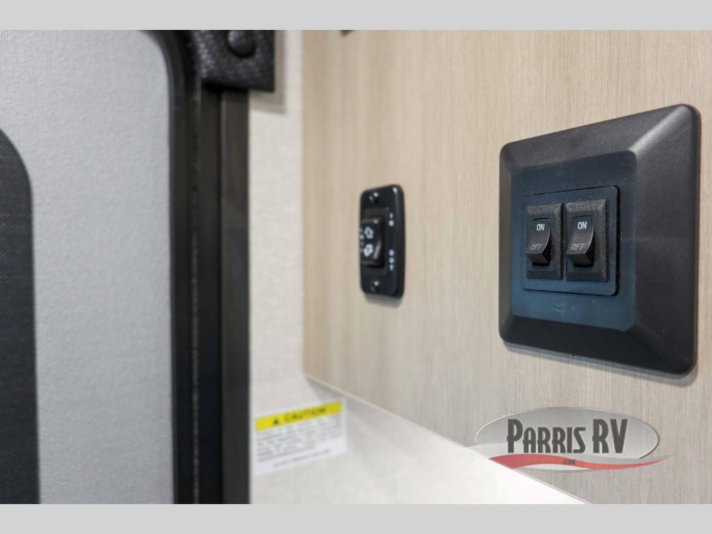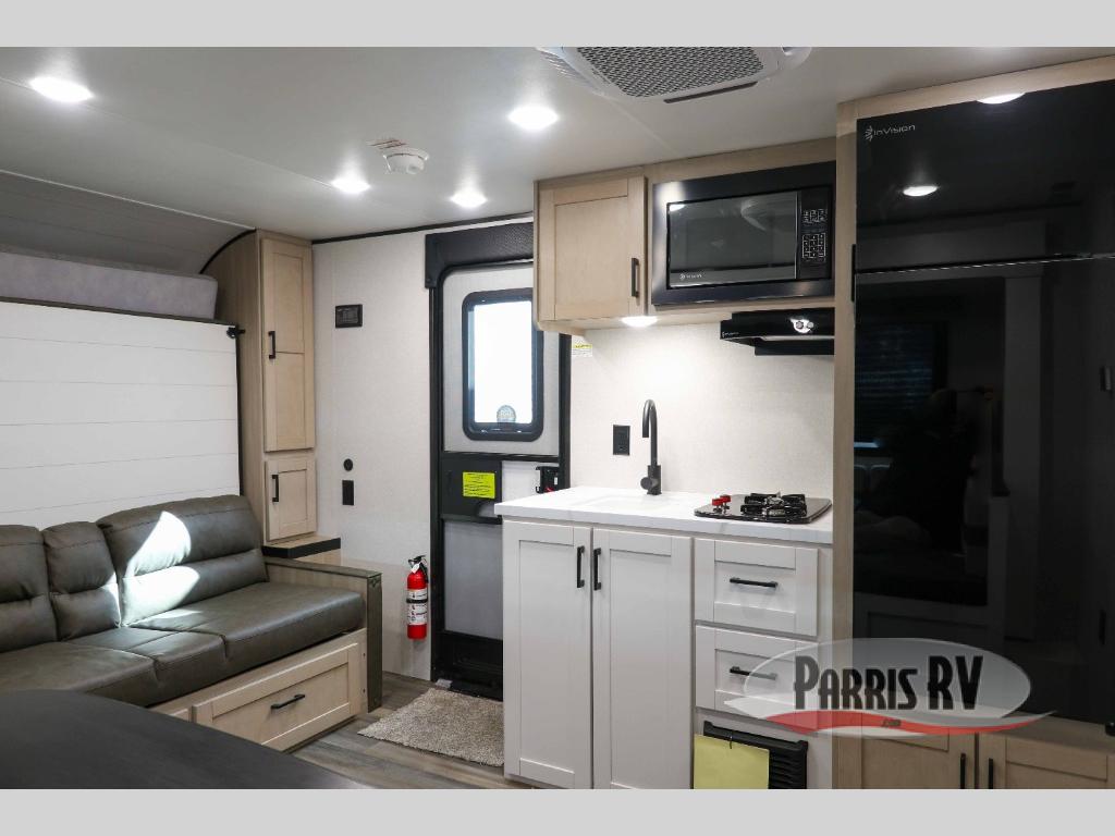 This travel trailer features compact sleeping spaces thanks to the double-size bunk beds in the rear corner, and the private full bath is right next to the bunks for easy nighttime use! You'll have the front Murphy bed all to yourselves, and in the morning, you can fold it away to sit on the jack-knife sofa. A cooktop and microwave oven will let you make meals each day, and there is a 12V refrigerator to keep your cold items fresh. Outside, you'll enjoy the 13' power awning for added shade, and there are two exterior storage compartments to keep fishing poles, hiking gear and more!