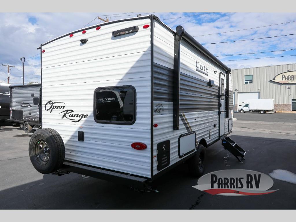 With any Colt travel trailer by Open Range RV, you can be sure you're getting a budget-friendly unit designed to fit your lifestyle! Each one is built to last with a PVC roofing membrane and built-in A-frame, plus there are nitrogen-filled radial tires and self-adjusting electric brakes for easy towing. You will appreciate the utilities that include 30-amp service, an A/C unit, and an on-demand tankless water heater. A few interior comforts include vinyl flooring throughout, solid hardwood cabinet doors, and residential grade kitchen countertops to make your space feel more like home. There are additional features available, depending on the edition you choose, along with available options to further customize your Colt travel trailer!