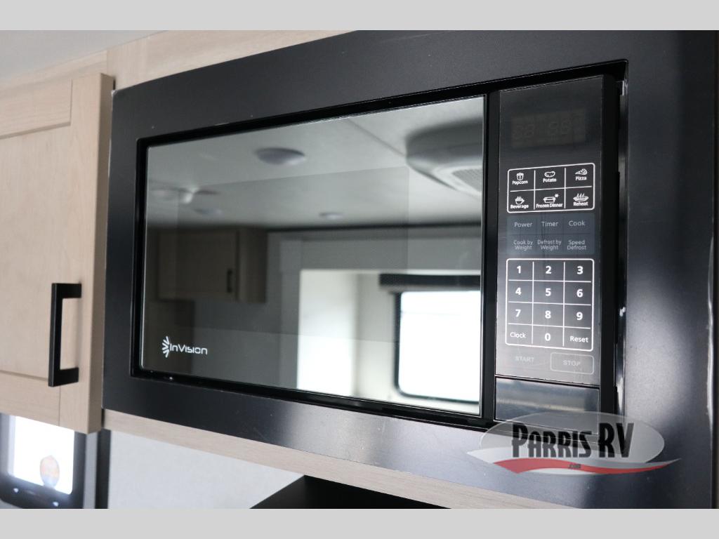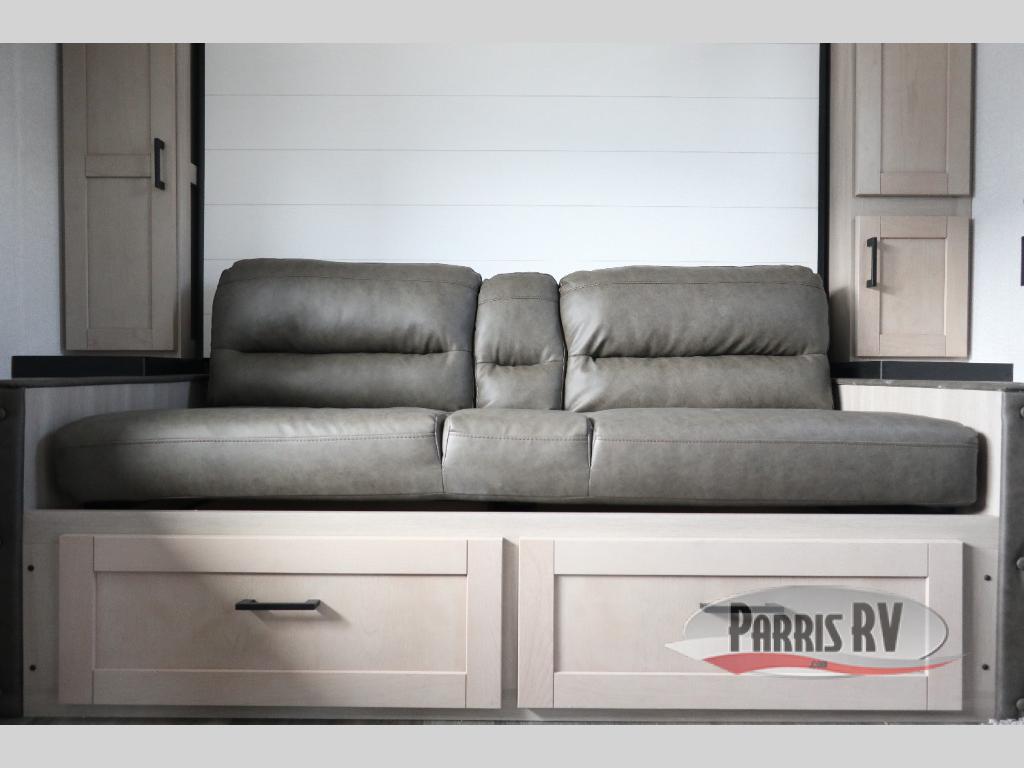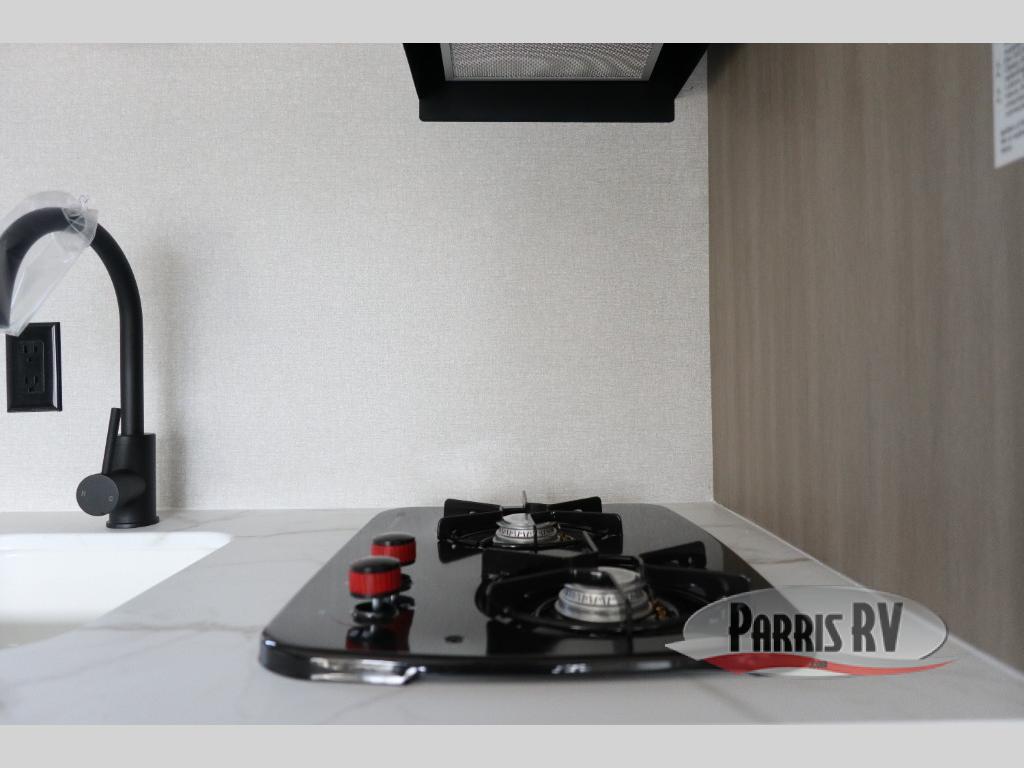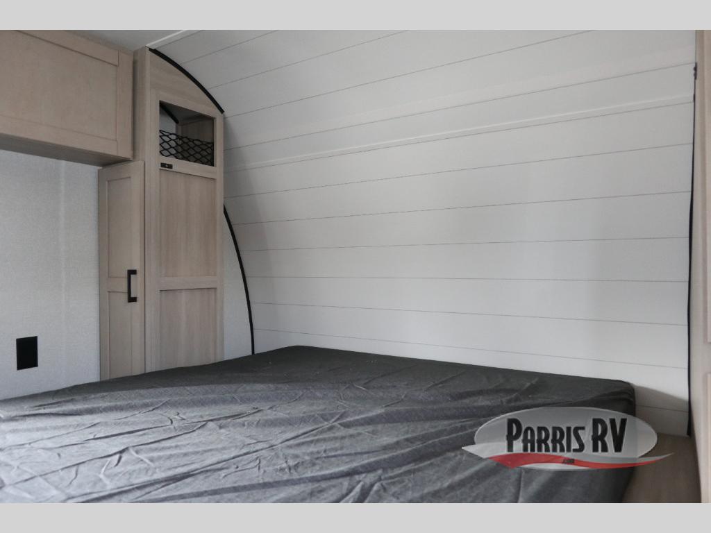 This travel trailer features compact sleeping spaces thanks to the double-size bunk beds in the rear corner, and the private full bath is right next to the bunks for easy nighttime use! You'll have the front Murphy bed all to yourselves, and in the morning, you can fold it away to sit on the jack-knife sofa. A cooktop and microwave oven will let you make meals each day, and there is a 12V refrigerator to keep your cold items fresh. Outside, you'll enjoy the 13' power awning for added shade, and there are two exterior storage compartments to keep fishing poles, hiking gear and more!