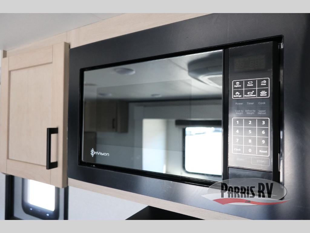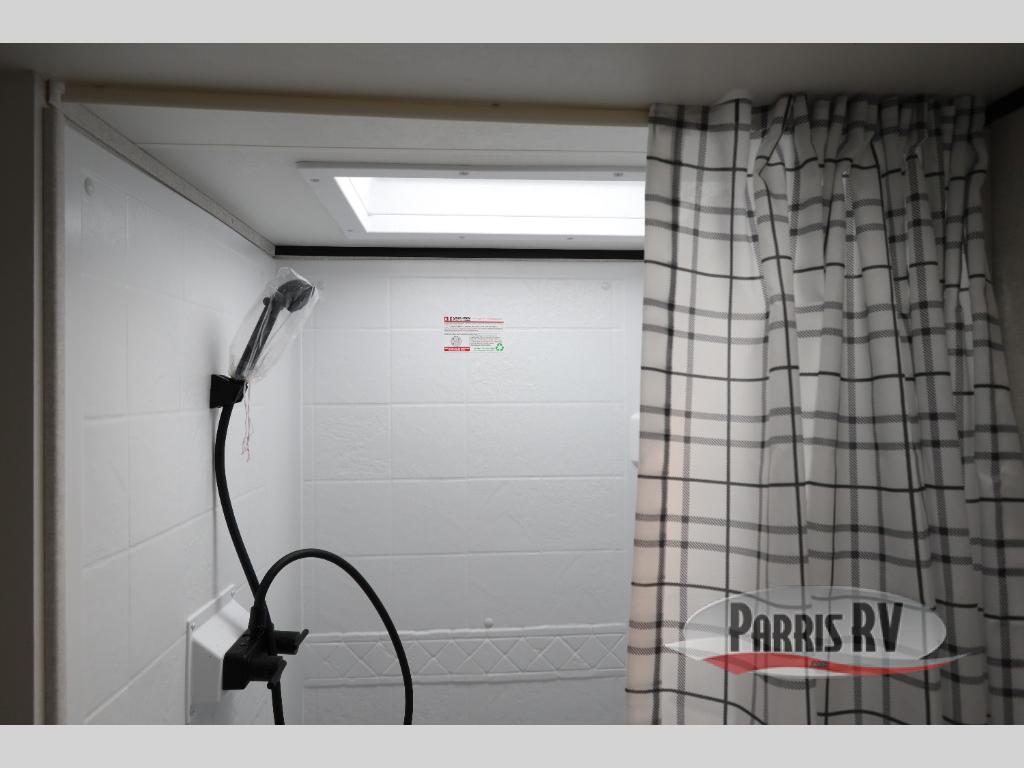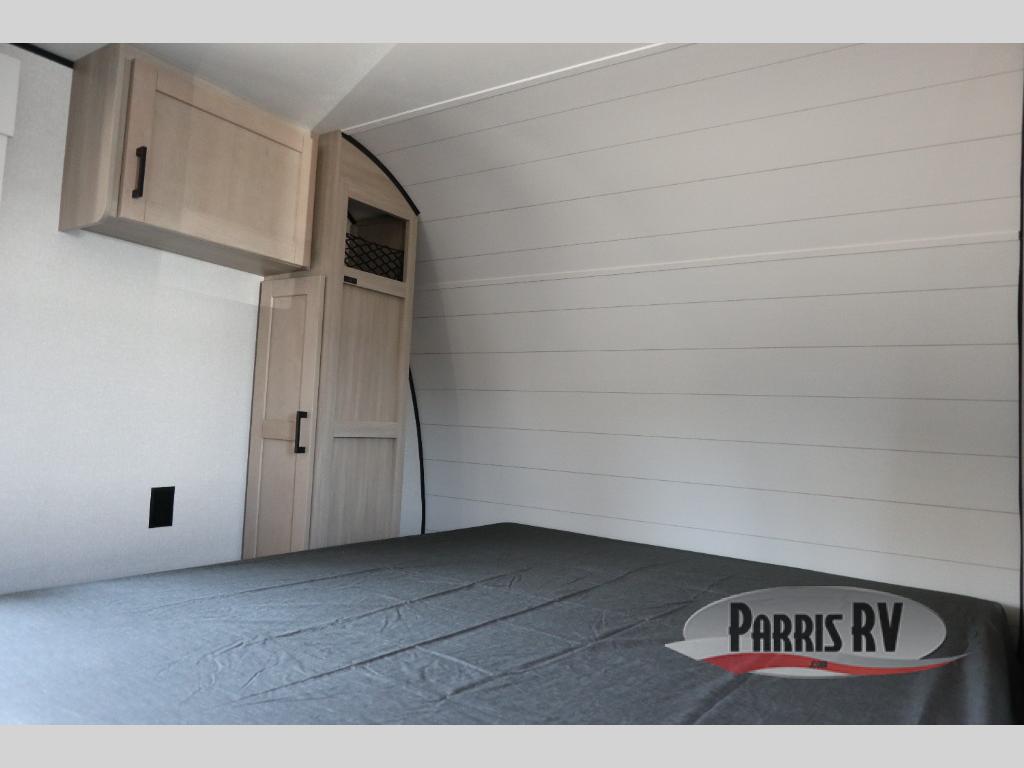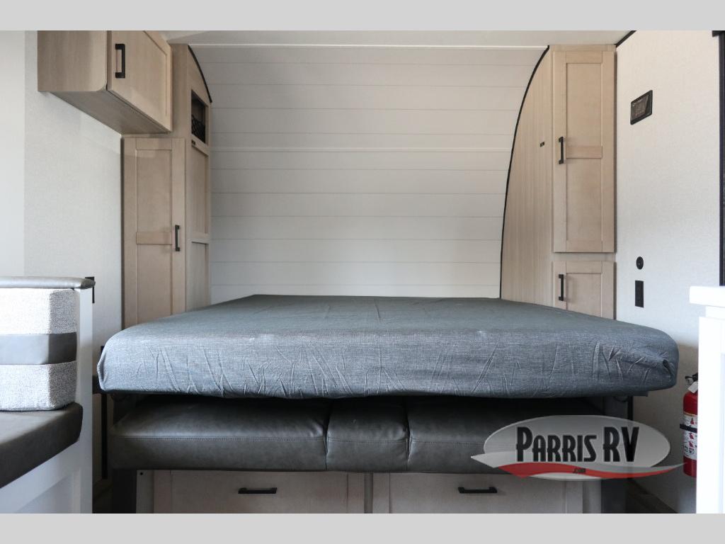 This travel trailer features compact sleeping spaces thanks to the double-size bunk beds in the rear corner, and the private full bath is right next to the bunks for easy nighttime use! You'll have the front Murphy bed all to yourselves, and in the morning, you can fold it away to sit on the jack-knife sofa. A cooktop and microwave oven will let you make meals each day, and there is a 12V refrigerator to keep your cold items fresh. Outside, you'll enjoy the 13' power awning for added shade, and there are two exterior storage compartments to keep fishing poles, hiking gear and more!
