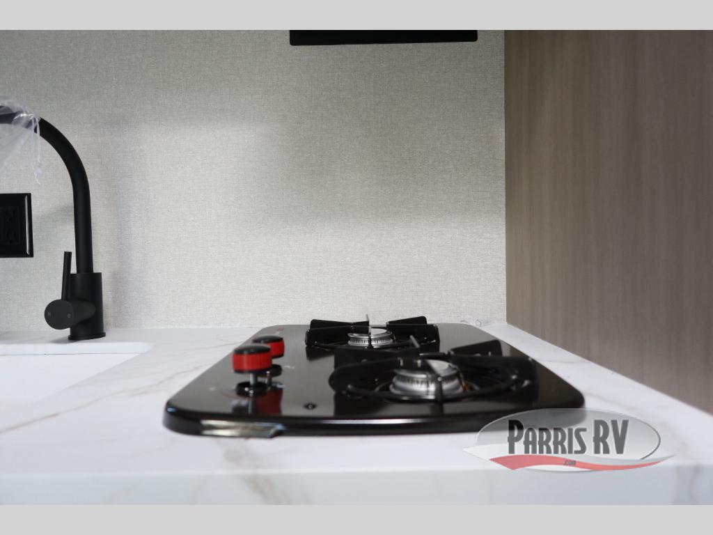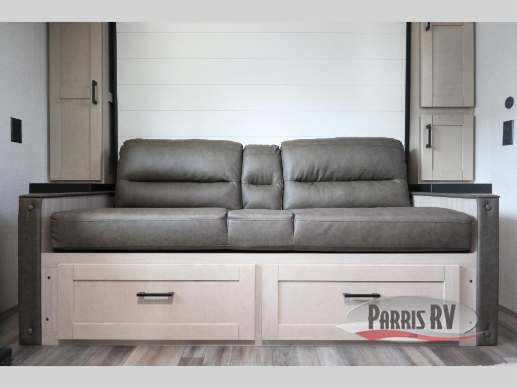 This travel trailer features compact sleeping spaces thanks to the double-size bunk beds in the rear corner, and the private full bath is right next to the bunks for easy nighttime use! You'll have the front Murphy bed all to yourselves, and in the morning, you can fold it away to sit on the jack-knife sofa. A cooktop and microwave oven will let you make meals each day, and there is a 12V refrigerator to keep your cold items fresh. Outside, you'll enjoy the 13' power awning for added shade, and there are two exterior storage compartments to keep fishing poles, hiking gear and more!