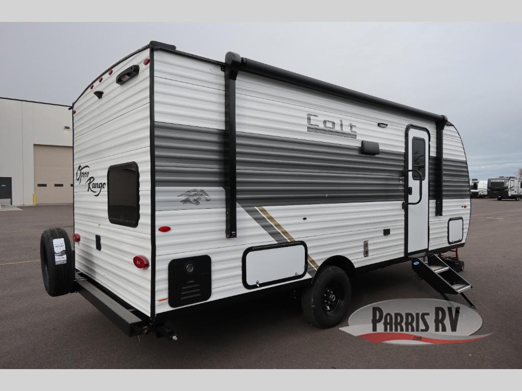 With any Colt travel trailer by Open Range RV, you can be sure you're getting a budget-friendly unit designed to fit your lifestyle! Each one is built to last with a PVC roofing membrane and built-in A-frame, plus there are nitrogen-filled radial tires and self-adjusting electric brakes for easy towing. You will appreciate the utilities that include 30-amp service, an A/C unit, and an on-demand tankless water heater. A few interior comforts include vinyl flooring throughout, solid hardwood cabinet doors, and residential grade kitchen countertops to make your space feel more like home. There are additional features available, depending on the edition you choose, along with available options to further customize your Colt travel trailer!