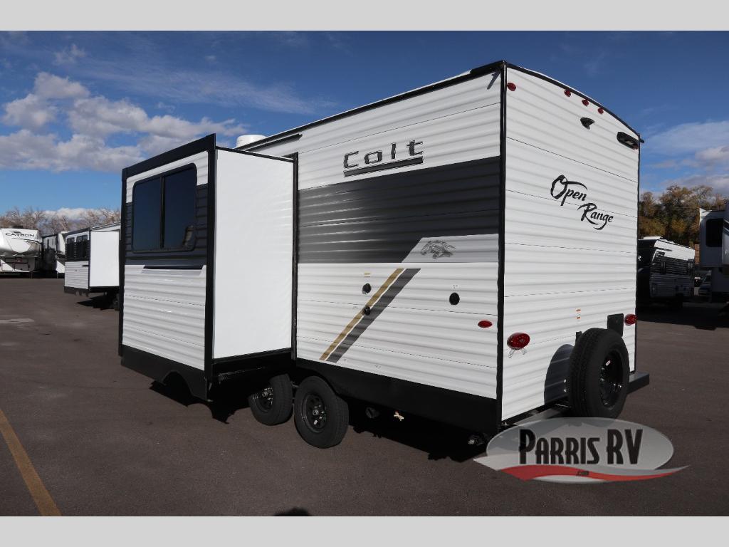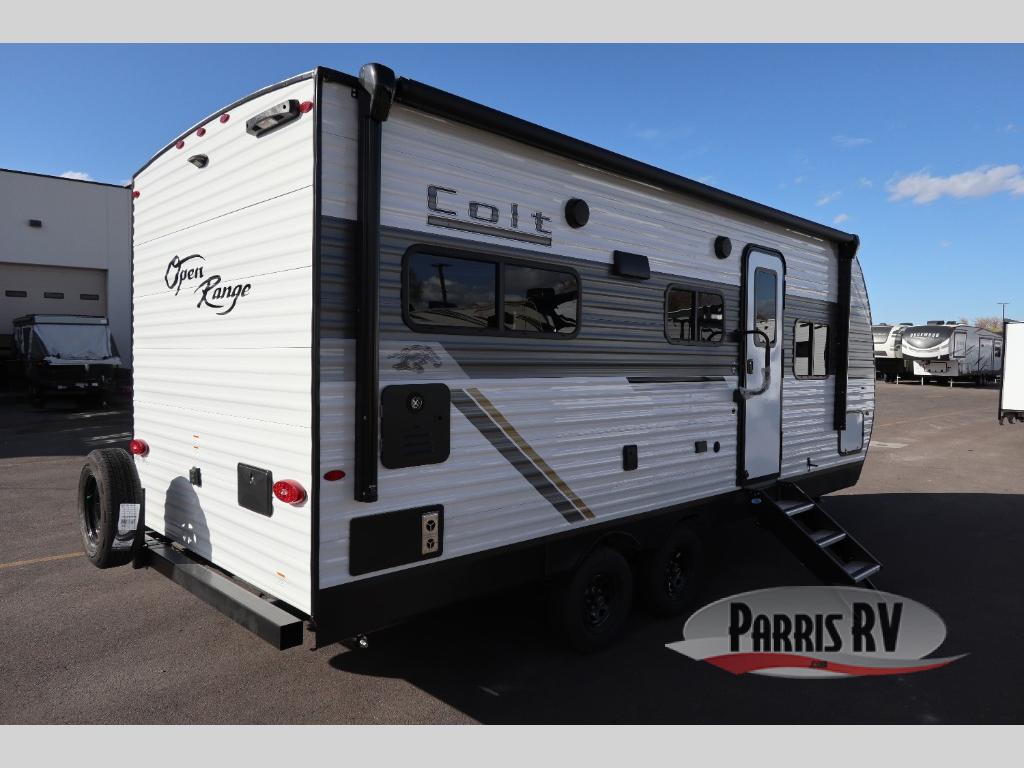 With any Colt travel trailer by Open Range RV, you can be sure you're getting a budget-friendly unit designed to fit your lifestyle! Each one is built to last with a PVC roofing membrane and built-in A-frame, plus there are nitrogen-filled radial tires and self-adjusting electric brakes for easy towing. You will appreciate the utilities that include 30-amp service, an A/C unit, and an on-demand tankless water heater. A few interior comforts include vinyl flooring throughout, solid hardwood cabinet doors, and residential grade kitchen countertops to make your space feel more like home. There are additional features available, depending on the edition you choose, along with available options to further customize your Colt travel trailer!
