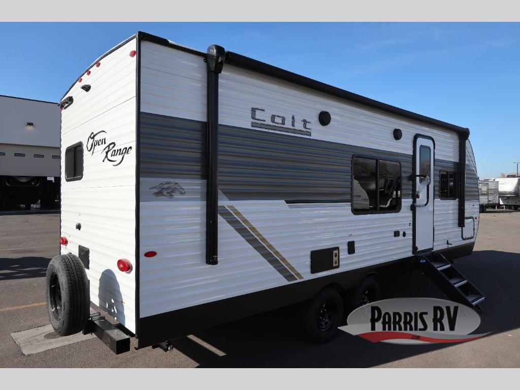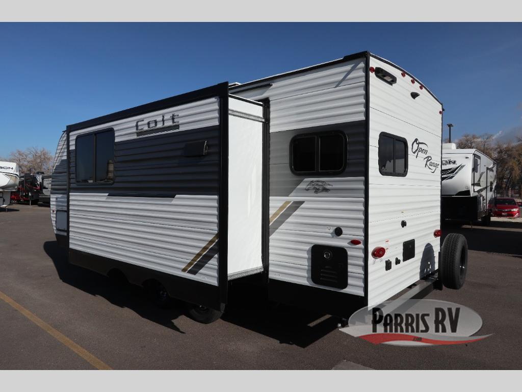 With any Colt travel trailer by Open Range RV, you can be sure you're getting a budget-friendly unit designed to fit your lifestyle! Each one is built to last with a PVC roofing membrane and built-in A-frame, plus there are nitrogen-filled radial tires and self-adjusting electric brakes for easy towing. You will appreciate the utilities that include 30-amp service, an A/C unit, and an on-demand tankless water heater. A few interior comforts include vinyl flooring throughout, solid hardwood cabinet doors, and residential grade kitchen countertops to make your space feel more like home. There are additional features available, depending on the edition you choose, along with available options to further customize your Colt travel trailer!