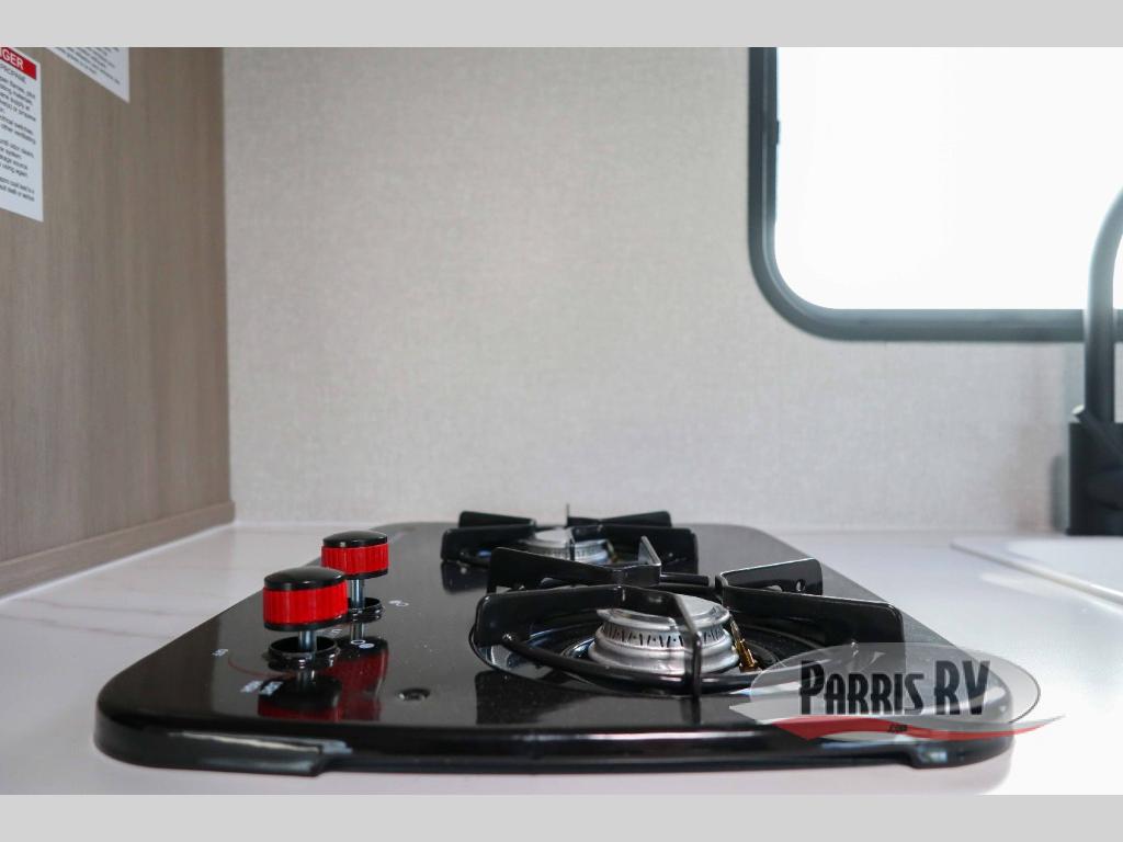 If you enjoy camping with a larger group, this travel trailer is perfect for you! There are double-size bunks in the back, which are right next to the private bath with a toilet and 40" shower. You can take the front queen bed with dual wardrobes, and any other guests can convert the sofa and booth dinette to sleeping space. A two-burner cooktop will let you make breakfast for everyone in the morning, and a 12V refrigerator will keep your perishables fresh!