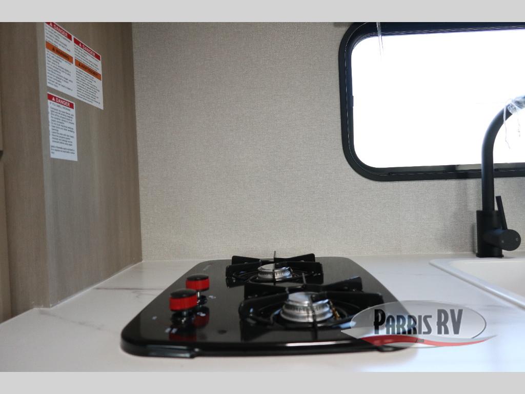 If you enjoy camping with a larger group, this travel trailer is perfect for you! There are double-size bunks in the back, which are right next to the private bath with a toilet and 40" shower. You can take the front queen bed with dual wardrobes, and any other guests can convert the sofa and booth dinette to sleeping space. A two-burner cooktop will let you make breakfast for everyone in the morning, and a 12V refrigerator will keep your perishables fresh!