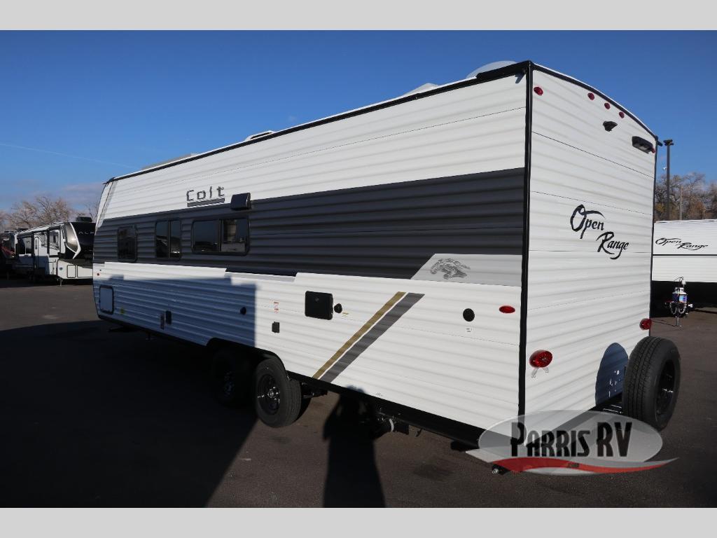 With any Colt travel trailer by Open Range RV, you can be sure you're getting a budget-friendly unit designed to fit your lifestyle! Each one is built to last with a PVC roofing membrane and built-in A-frame, plus there are nitrogen-filled radial tires and self-adjusting electric brakes for easy towing. You will appreciate the utilities that include 30-amp service, an A/C unit, and an on-demand tankless water heater. A few interior comforts include vinyl flooring throughout, solid hardwood cabinet doors, and residential grade kitchen countertops to make your space feel more like home. There are additional features available, depending on the edition you choose, along with available options to further customize your Colt travel trailer!