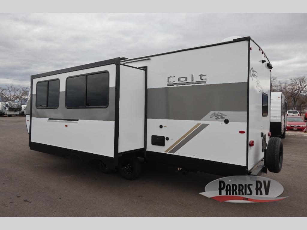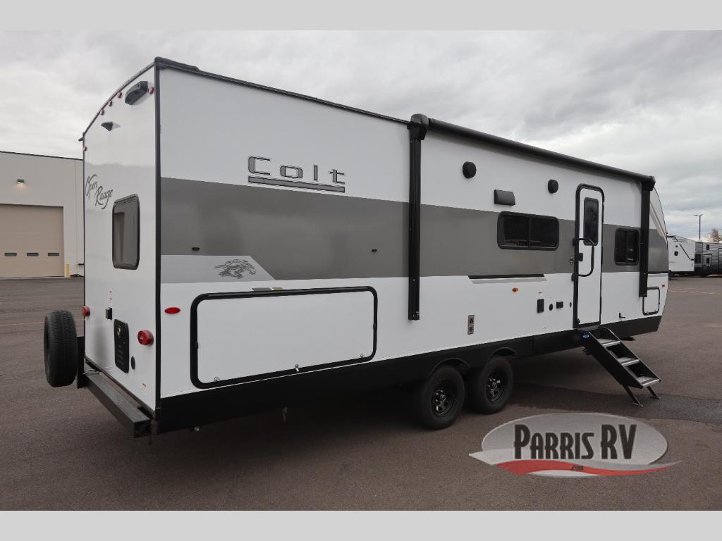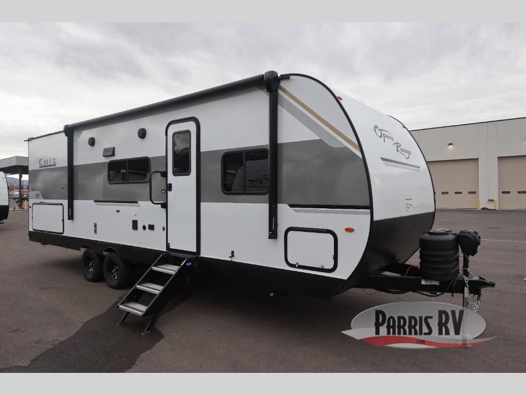 With any Colt travel trailer by Open Range RV, you can be sure you're getting a budget-friendly unit designed to fit your lifestyle! Each one is built to last with a PVC roofing membrane and built-in A-frame, plus there are nitrogen-filled radial tires and self-adjusting electric brakes for easy towing. You will appreciate the utilities that include 30-amp service, an A/C unit, and an on-demand tankless water heater. A few interior comforts include vinyl flooring throughout, solid hardwood cabinet doors, and residential grade kitchen countertops to make your space feel more like home. There are additional features available, depending on the edition you choose, along with available options to further customize your Colt travel trailer!