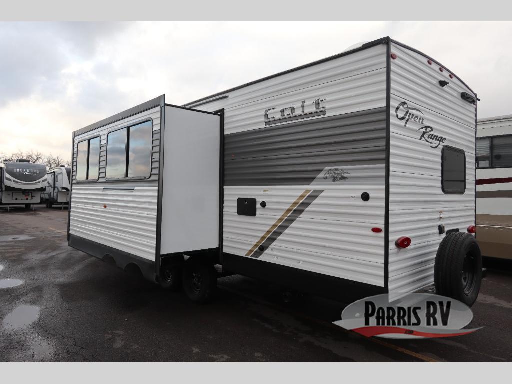 With any Colt travel trailer by Open Range RV, you can be sure you're getting a budget-friendly unit designed to fit your lifestyle! Each one is built to last with a PVC roofing membrane and built-in A-frame, plus there are nitrogen-filled radial tires and self-adjusting electric brakes for easy towing. You will appreciate the utilities that include 30-amp service, an A/C unit, and an on-demand tankless water heater. A few interior comforts include vinyl flooring throughout, solid hardwood cabinet doors, and residential grade kitchen countertops to make your space feel more like home. There are additional features available, depending on the edition you choose, along with available options to further customize your Colt travel trailer!