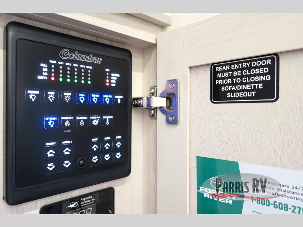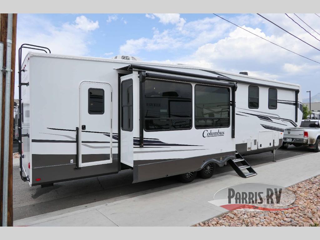 Experience a different camping life with residential furnishings and high end features in each one of these Palomino Columbus fifth wheels! The 101" wide body lets you walk around more throughout and the all-welded aluminum-frame superstructure has a snap-in ceiling molding to hold up through every adventure. Don't leave any of your gear behind either when you can easily store it in the climate controlled drop frame storage area. On the exterior, you'll find a heated utility convenience center, an outside sprayer to keep the dirt outside where it belongs, and magnetic compartment door holds to keep them from falling on you as you grab your items. Plus, there are some modern features that will really seal the deal like the Wi-Fi Booster with 4G LTE capability prep, upgraded true solid-surface countertops, power theater seating with USB charging, and a 260W solar panel for off-grid camping!