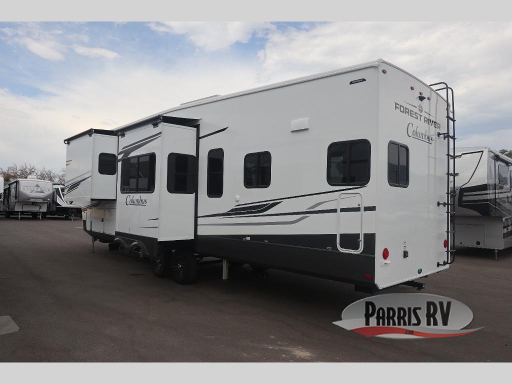 Experience a different camping life with residential furnishings and high end features in each one of these Palomino Columbus fifth wheels! The 101" wide body lets you walk around more throughout and the all-welded aluminum-frame superstructure has a snap-in ceiling molding to hold up through every adventure. Don't leave any of your gear behind either when you can easily store it in the climate controlled drop frame storage area. On the exterior, you'll find a heated utility convenience center, an outside sprayer to keep the dirt outside where it belongs, and magnetic compartment door holds to keep them from falling on you as you grab your items. Plus, there are some modern features that will really seal the deal like the Wi-Fi Booster with 4G LTE capability prep, upgraded true solid-surface countertops, power theater seating with USB charging, and a 260W solar panel for off-grid camping!