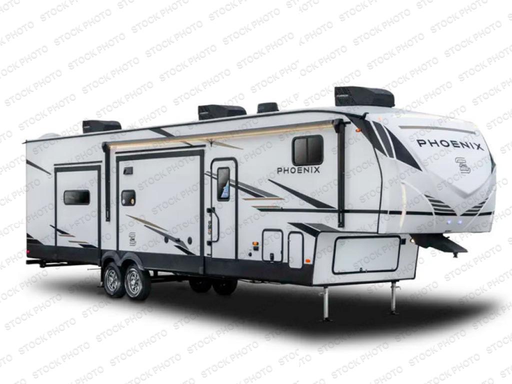 With any Phoenix mid-profile fifth wheel by Shasta RVs, the standout construction features include residential 5" truss rafters, full walk-on roof decking, AZDEL composite sidewall panels. The Weather Shield+ offers cold and hot testing, a sectionalized underbelly and heated gate valves and more so you can camp during more harsh weather if you wish. The Road Armor Suspension by Trail Air will make towing easier than ever, and the upgraded marine-style convenience center includes a black tank flush plus a hot/cold shower to wash off hiking gear. Head inside to find solid surface countertops and sink covers, an upgraded 50" 4K Smart LED TV in the living room, USB/USB-C charging ports in the bedroom, and an upgraded 60K BTU on-demand water heater to name a few comforts!