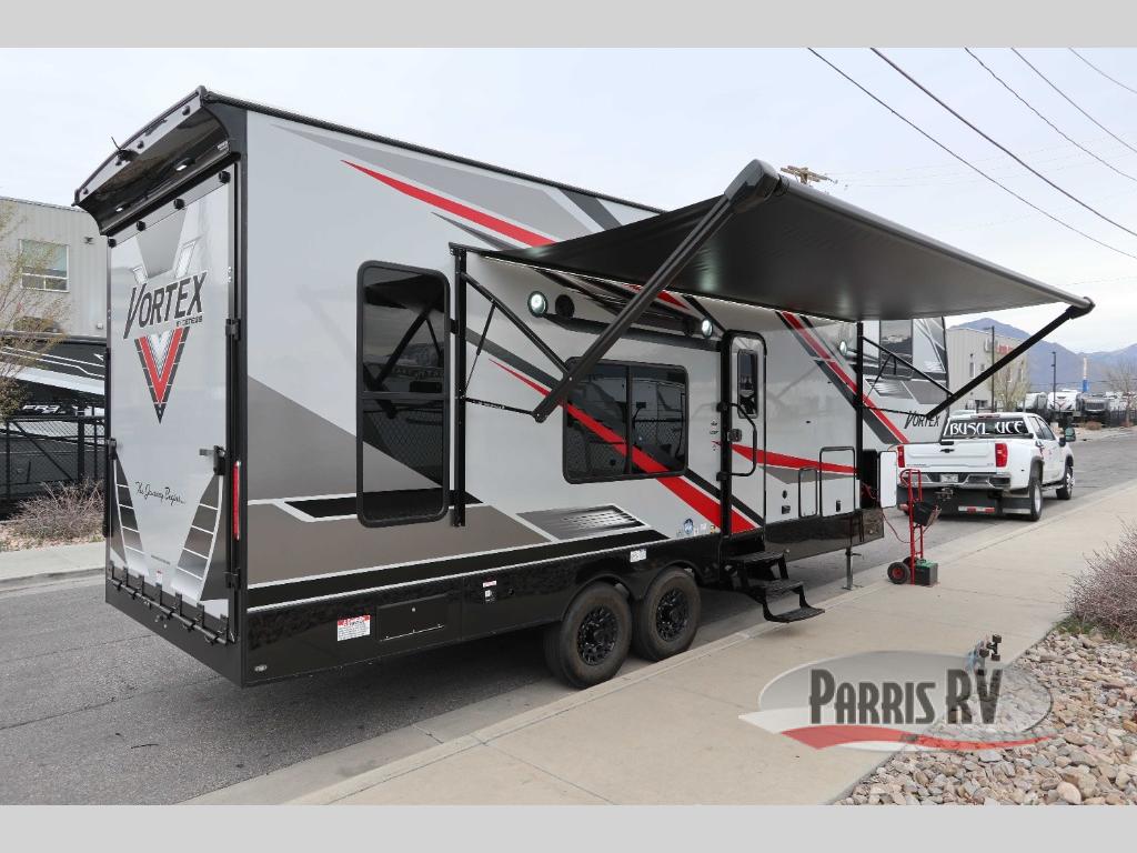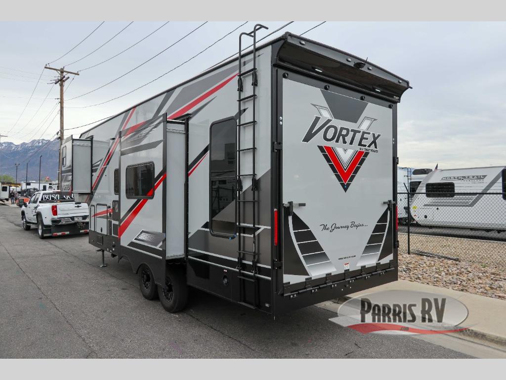 Your camping life is going to be a blast with the Genesis Supreme Vortex toy hauler! The innovative floorplans provide you with everything you need for memorable trips. These models can withstand the extreme heat of the desert, while still keeping you comfortable inside. There are kitchen and bath amenities inside, along with ample storage space for your belongings. With a wide variety of floorplans to choose from, you're sure to find the Vortex that fits your needs best!
