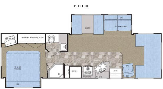 Single Slide Out, Rear Bedroom, Queen Bed, Wardrobes, Bathroom w/Seperate Angle Shower, Full Ktichen, Pantry, Refrigerator, 3 Burner Range, Double Kitchen Sink, Booth Dinette, Sofa Bed, Chair, Cab Over Bed, and More.