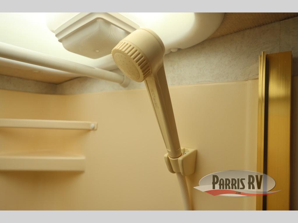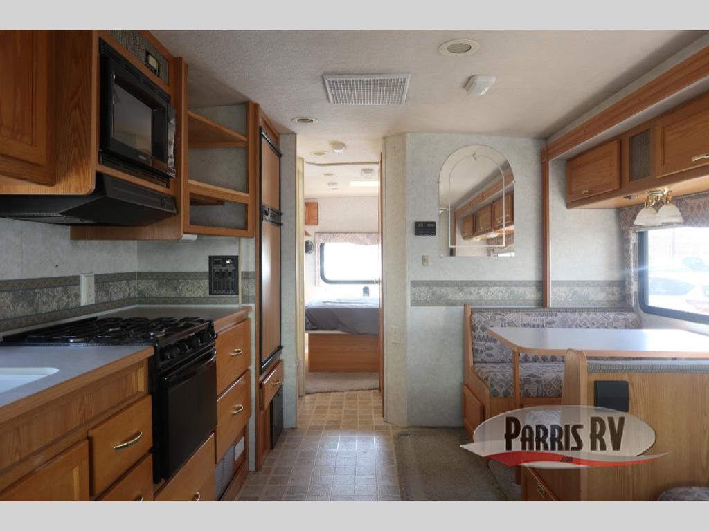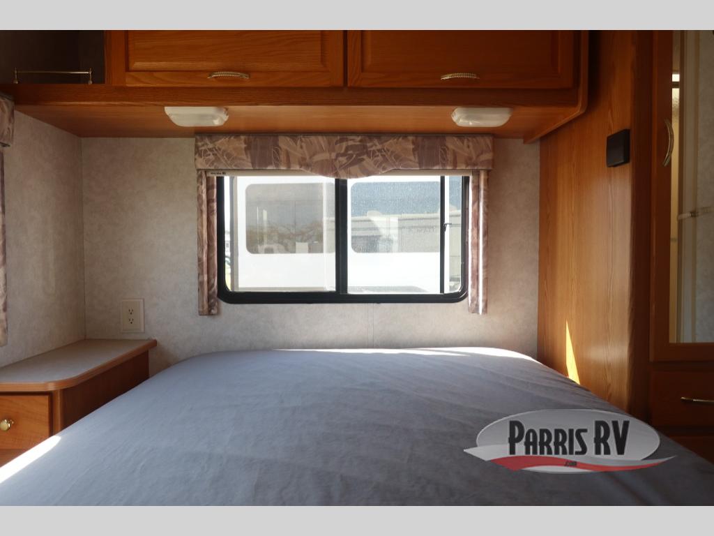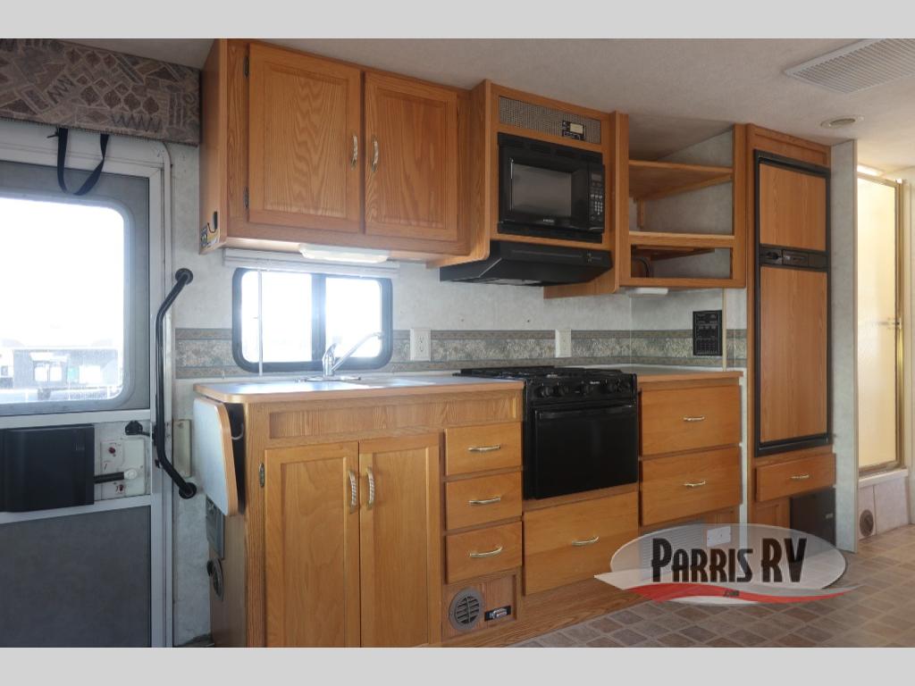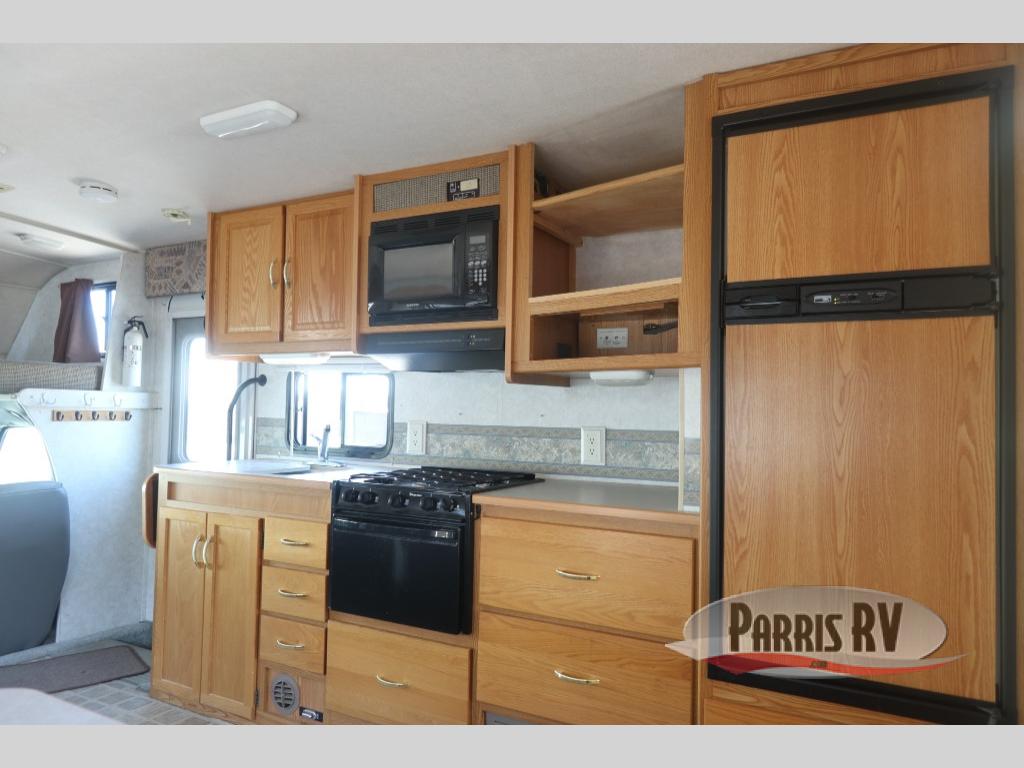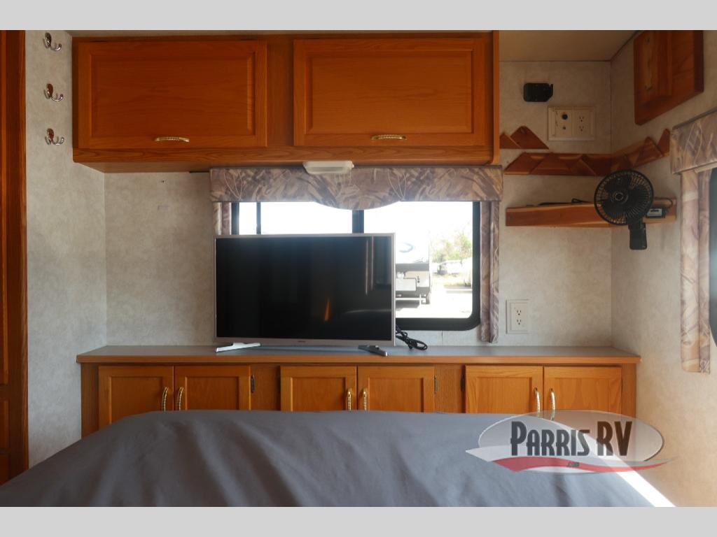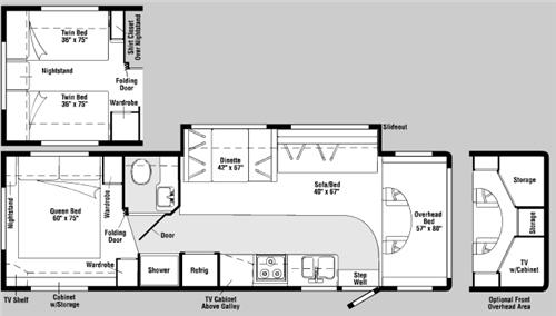 Rear Queen Bed w/Nightstands or Opt. Twin Beds w/Nightstand Between, TV Shelf, Wardrobe, Shower, Refrigerator, TV Cabinet Above Galley, Booth Dinette & Sofa Bed Slideout w/Seat Belts, 3 Burner Range, Double Kitchen Sink, Over Cab Double Bed or Opt. Storage and TV w/Cabinet, and More.