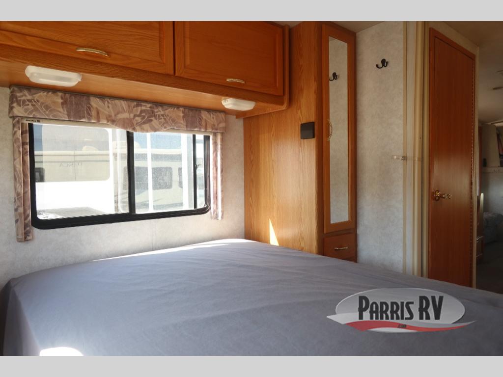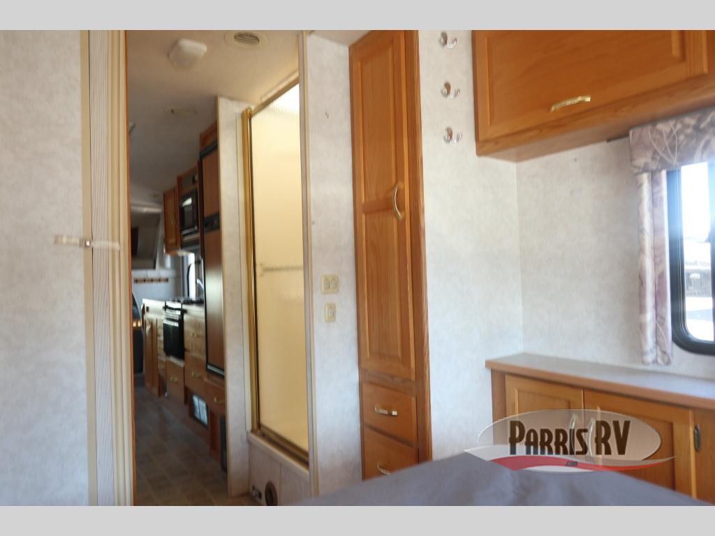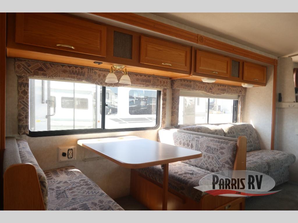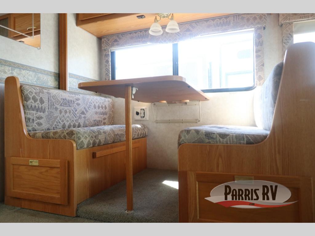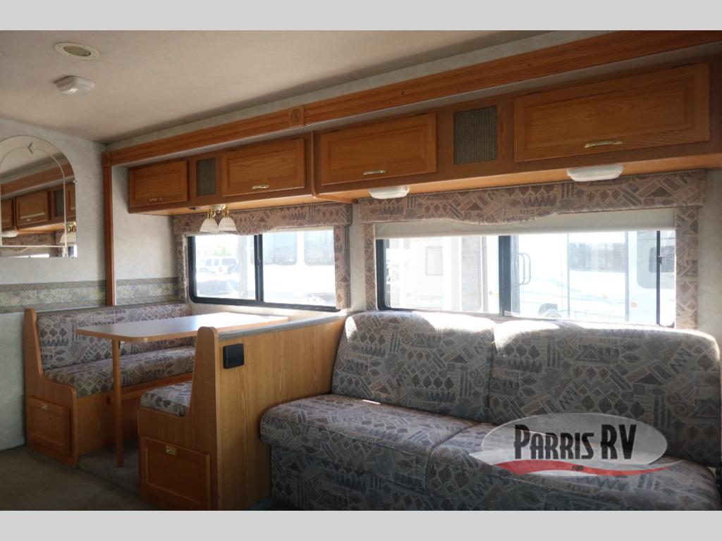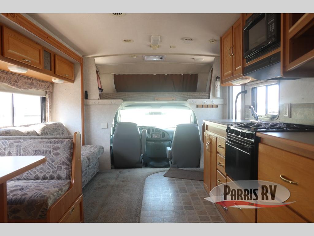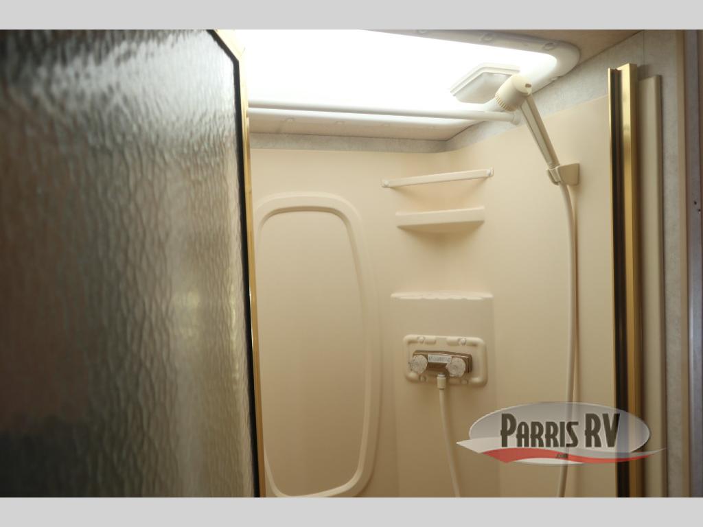 Rear Queen Bed w/Nightstands or Opt. Twin Beds w/Nightstand Between, TV Shelf, Wardrobe, Shower, Refrigerator, TV Cabinet Above Galley, Booth Dinette & Sofa Bed Slideout w/Seat Belts, 3 Burner Range, Double Kitchen Sink, Over Cab Double Bed or Opt. Storage and TV w/Cabinet, and More.