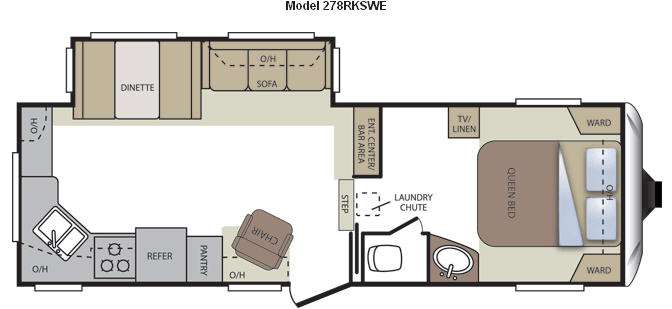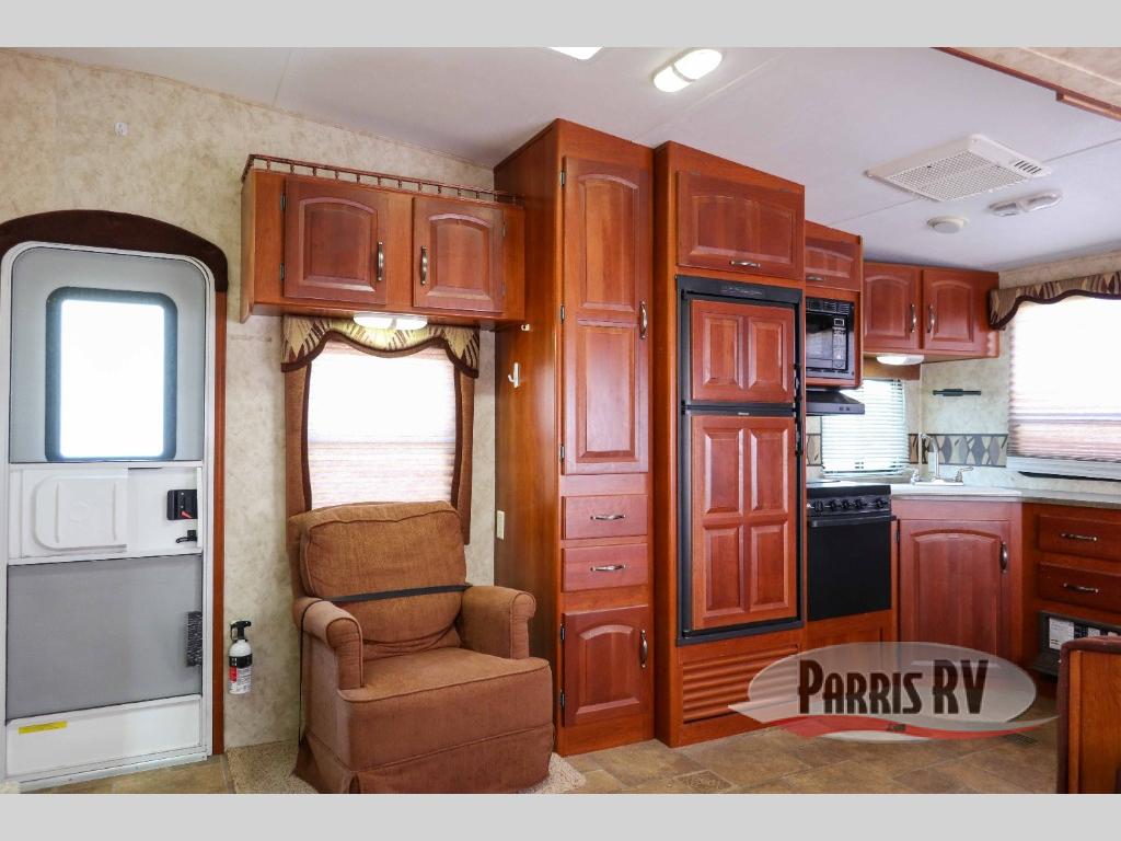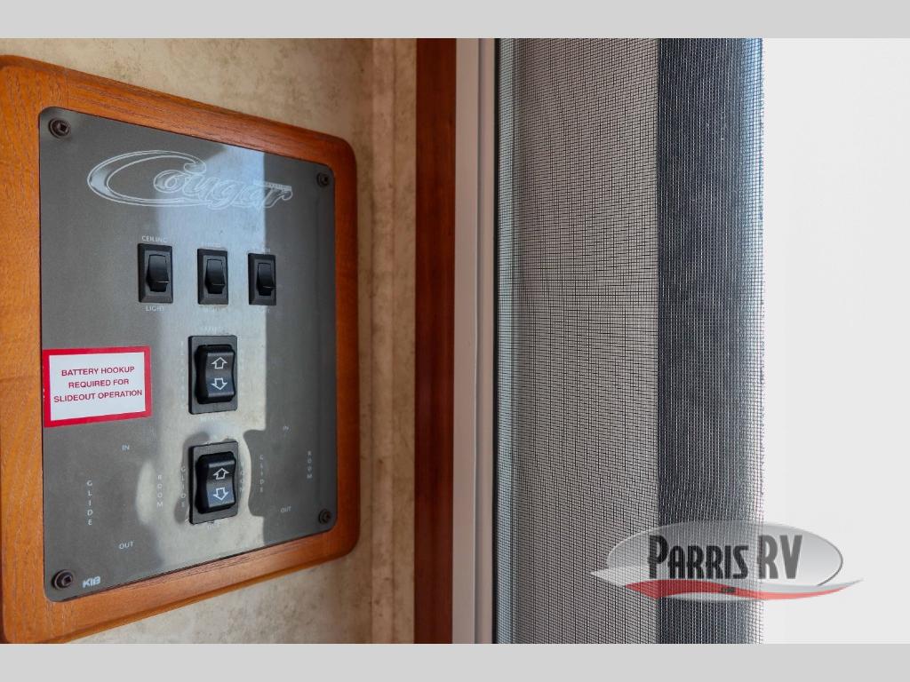 Rear Kitchen!Single Slide Cougar 1/2 Ton Series Fifth Wheel by Keystone, Rear Kitchen w/Dbl. Kitchen Sink, 3 Burner Range, Refrig., Overhead Cabinets, Lounge Chair, Booth Dinette/Sofa Slideout w/Overhead Cabinets, Ent. Center/Bar Area, Step Up to Bed & Bath, Laundry Chute, Private Toilet Area, Lavatory, Neo-Angle Shower, TV/Linen, Front Queen Bed w/Dbl. Wardrobe and More!