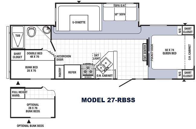 Palomino Puma Bunkhouse Travel Trailer w/Rear Corner Bath Including Tub/Shower, Toilet & Sink, Rear Corner Dbl. Bed w/Bunk Above, Shirt Closet, Accordion Door, Pantry, Refrig., 3 Burner Range, Skylight in Kitchen, Dbl. Kitchen Sink, Overhead Cabinet, U-Dinette & 58" Sofa Slideout, Ent. Center, Pocket Doors to Front Queen Bed w/Nightstands w/Shirt Closets Above, Pass-Thru Front Storage and More! Available Options May Include: Bunk Beds w/Full Height Wardrobe IPO Dbl. Bed w/Bunk