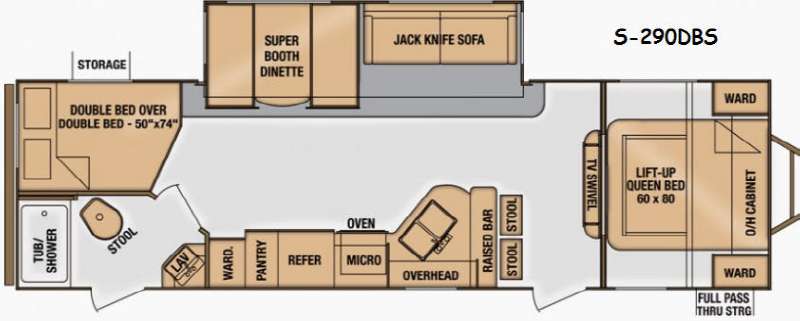 For the larger family, or one that likes to travel with friends, this Shadow Cruiser model 290DBS by Cruiser RV is perfect. It features double bed bunks, a large slide, and dual entry doors for convenience.