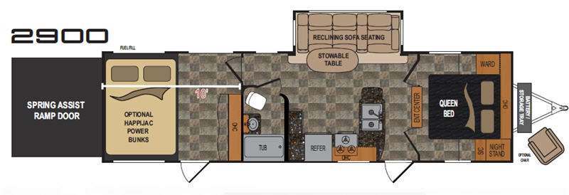 This Dutchmen Rubicon 2900 toy hauler travel trailer will easily take you and your family to your favorite place to camp and enjoy outdoor fun. With a 10' cargo area you can easily take along a few outdoor toys.